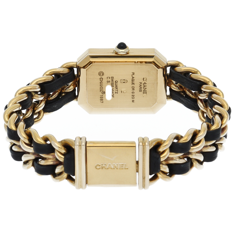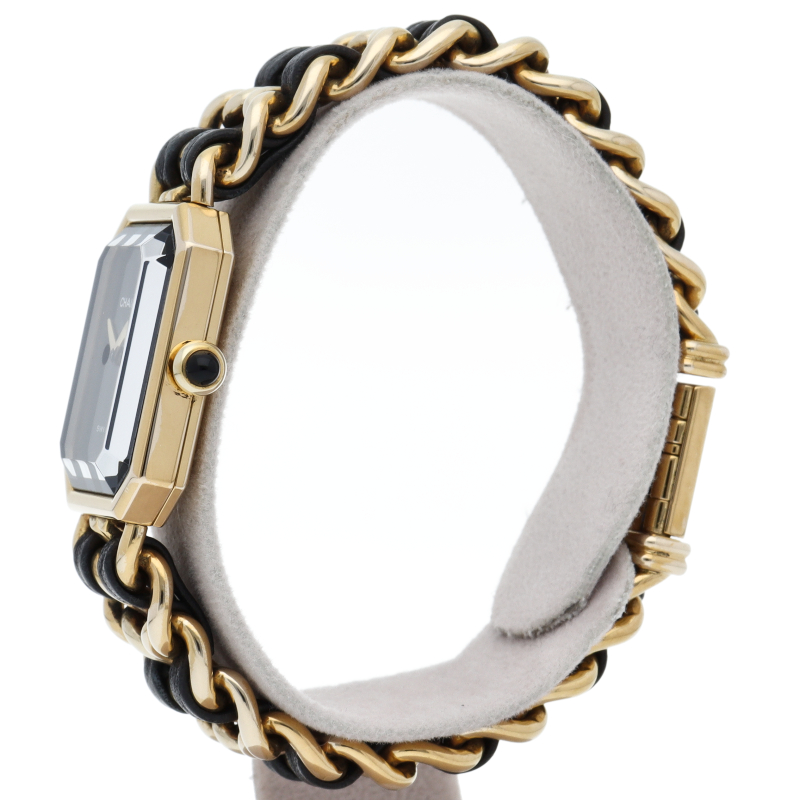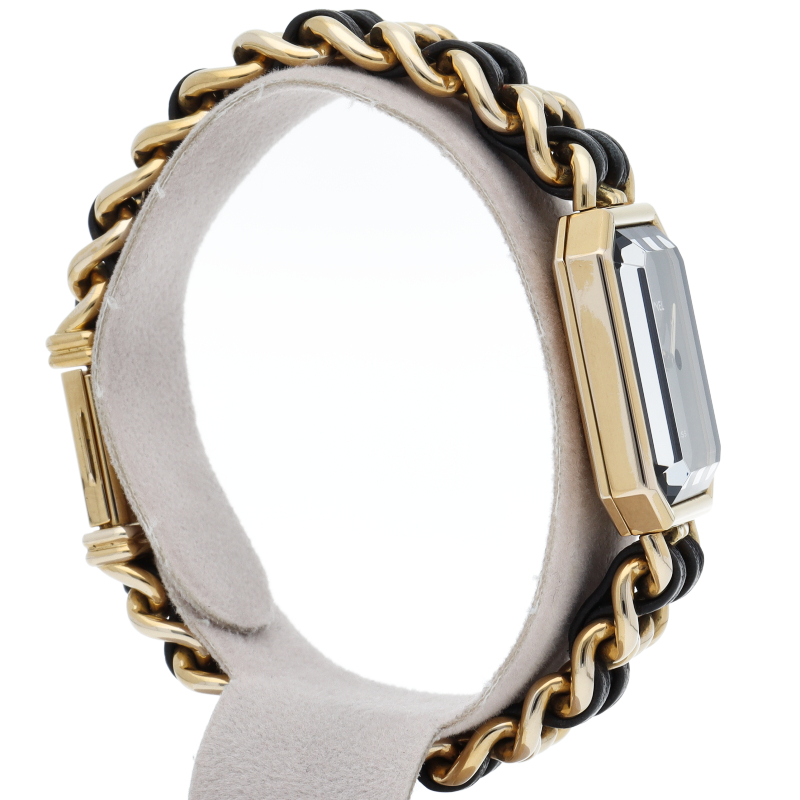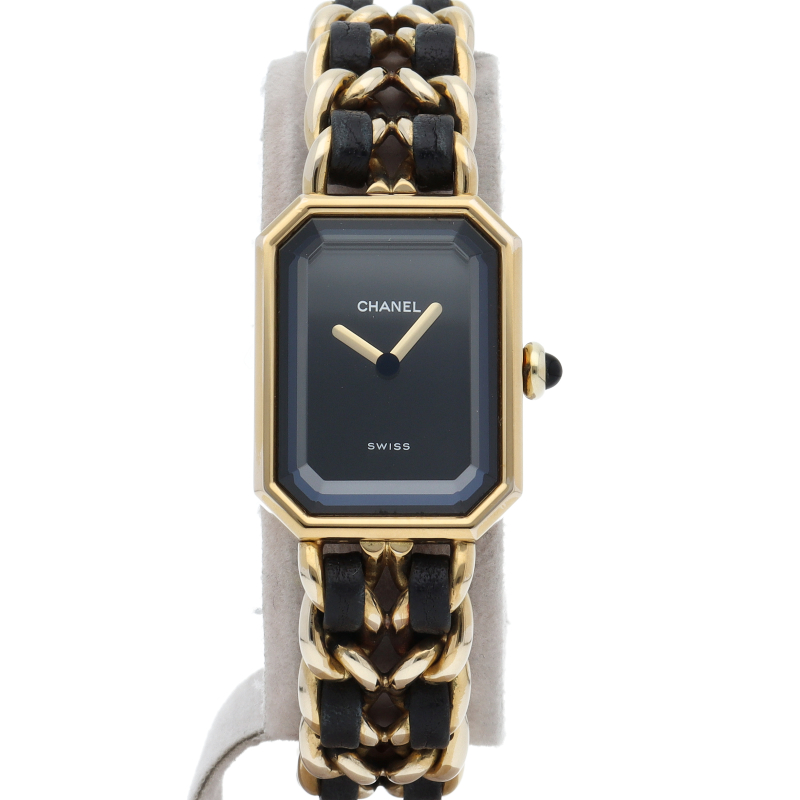 気品溢れるシャネルウォッチの定番モデルでプルミエールです。レザーがブレスに編みこまれたデザインが特徴的な1本。