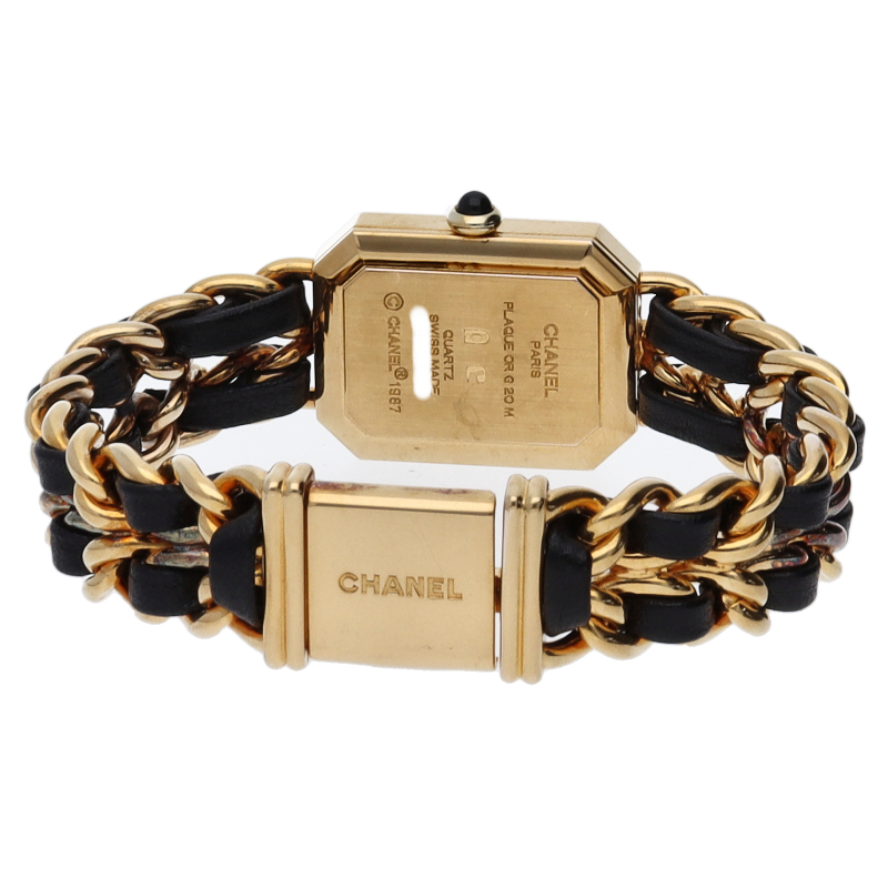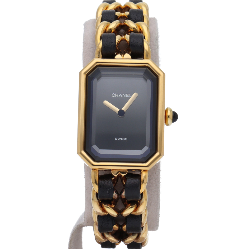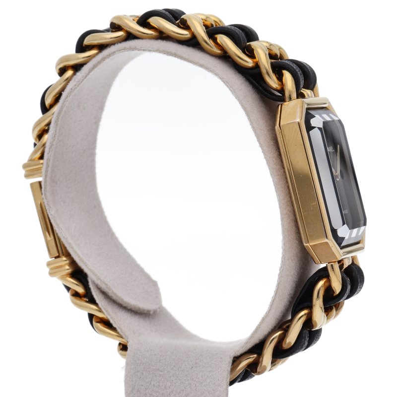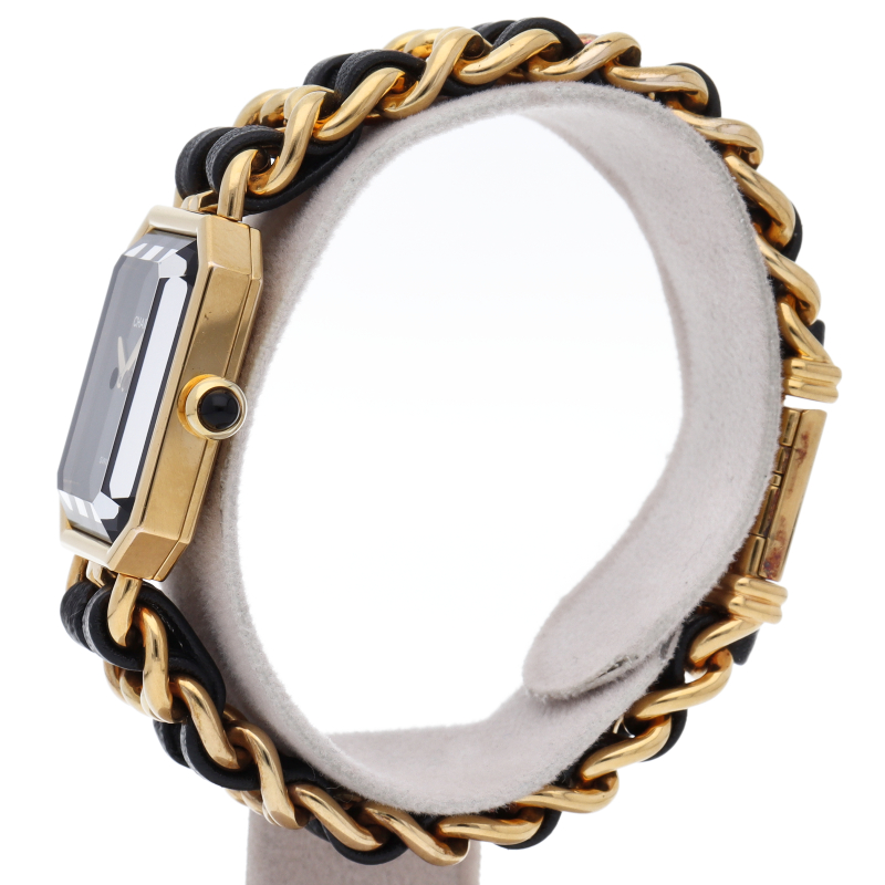 気品溢れるシャネルウォッチの定番モデルでプルミエールです。レザーがブレスに編みこまれたデザインが特徴的な1本。