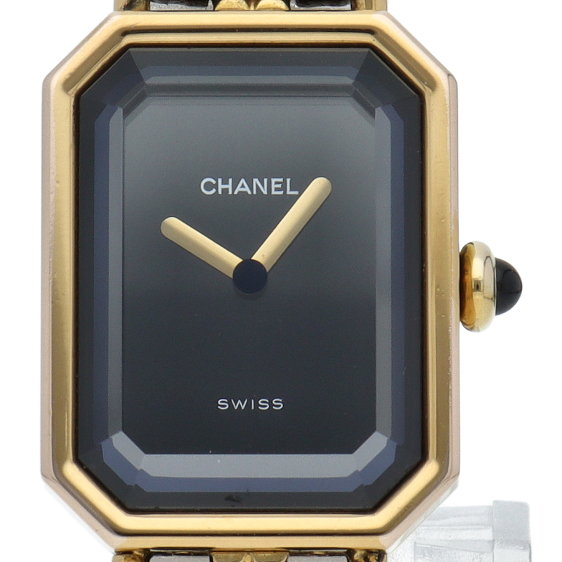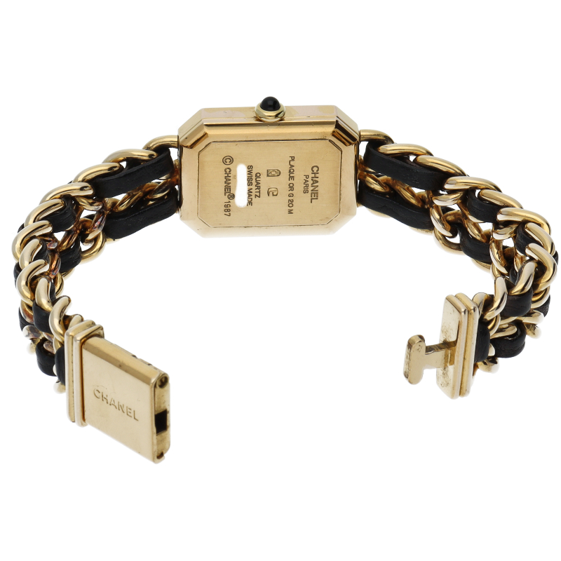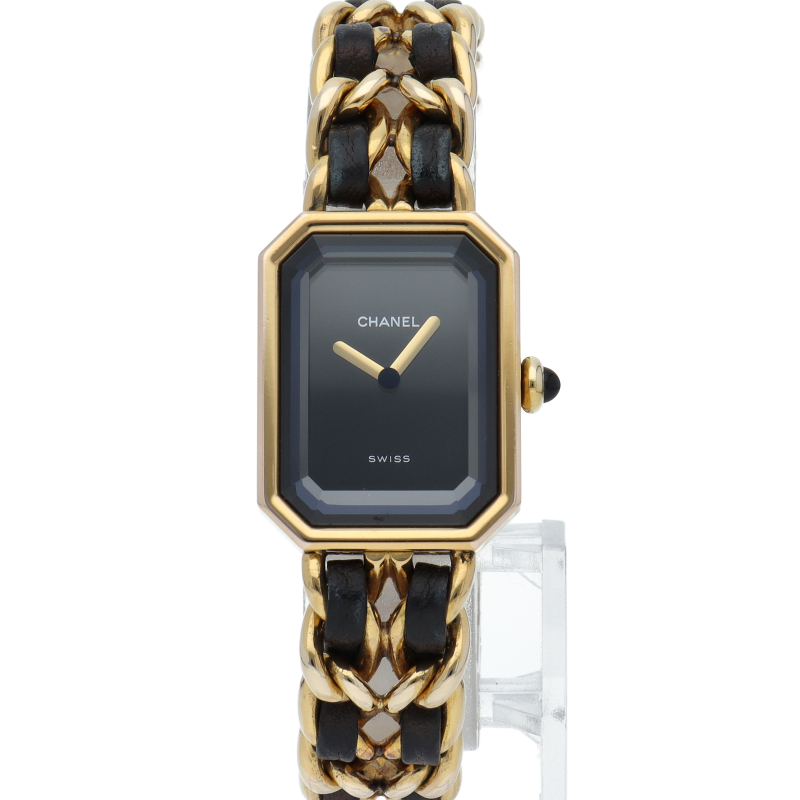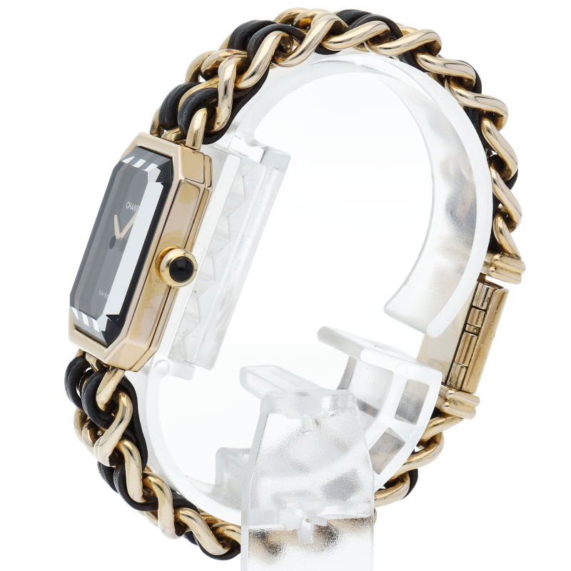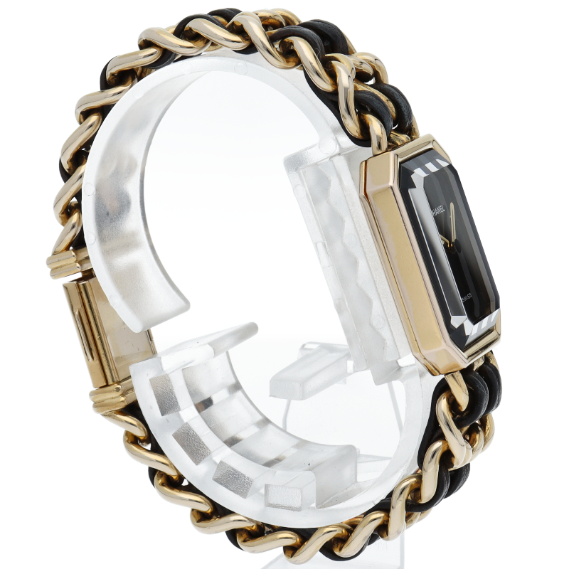 気品溢れるシャネルウォッチの定番モデルでプルミエールです。レザーがブレスに編みこまれたデザインが特徴的な1本。