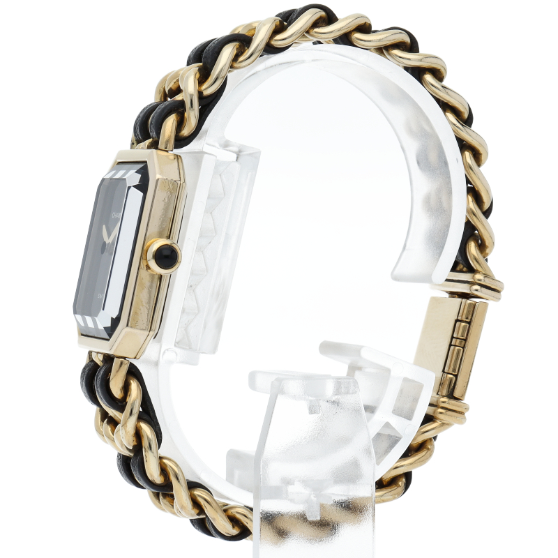 気品溢れるシャネルウォッチの定番モデルでプルミエールです。レザーがブレスに編みこまれたデザインが特徴的な1本。