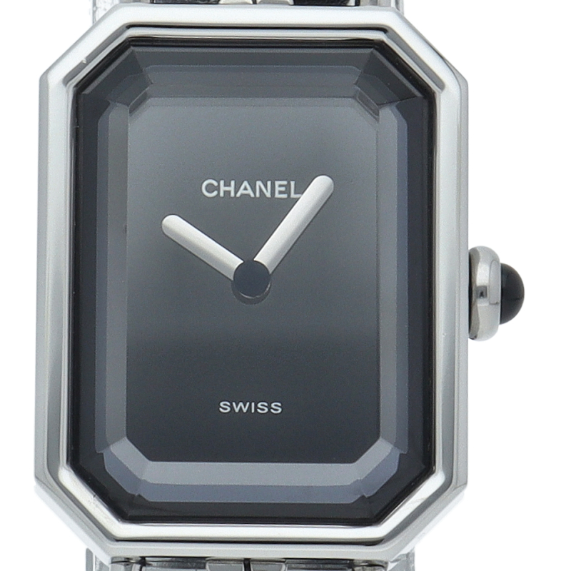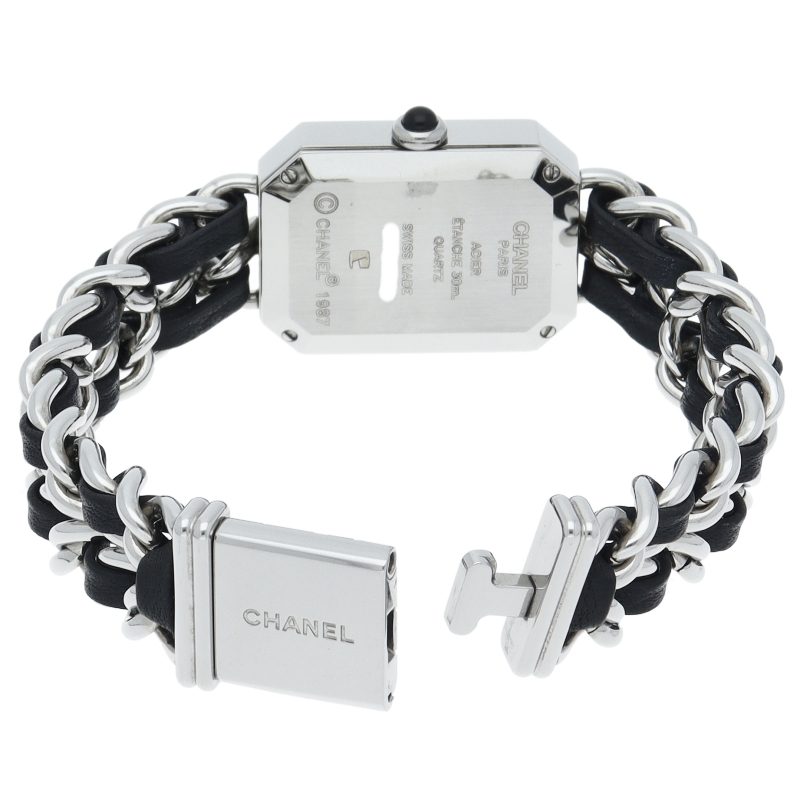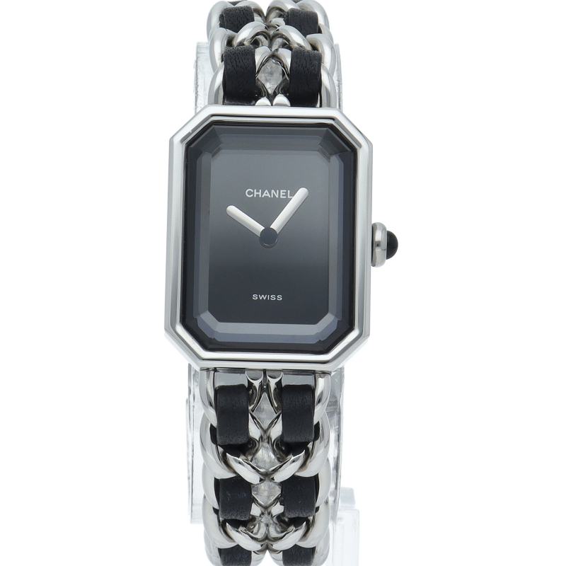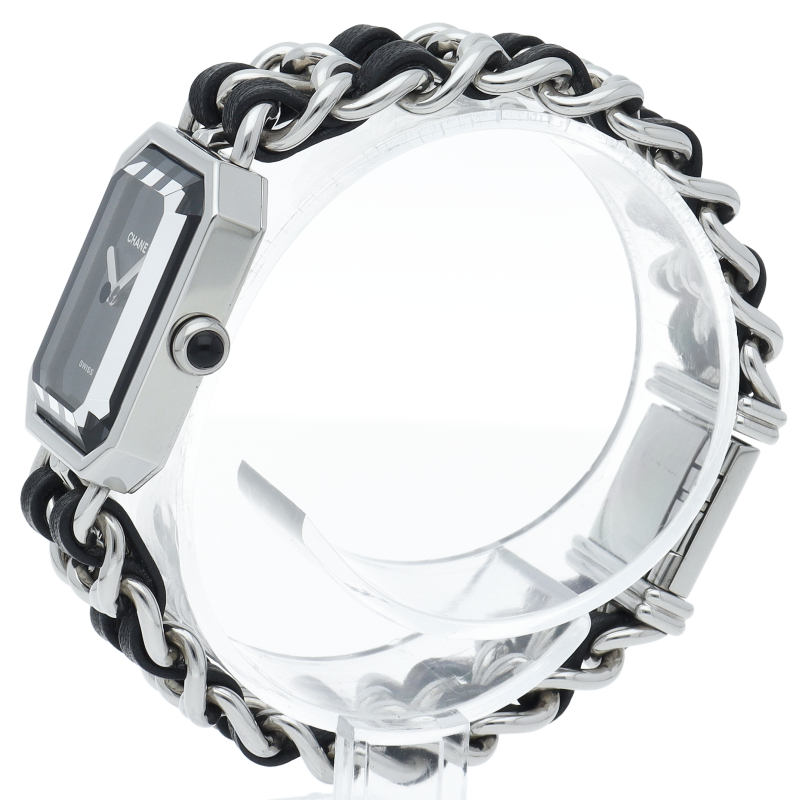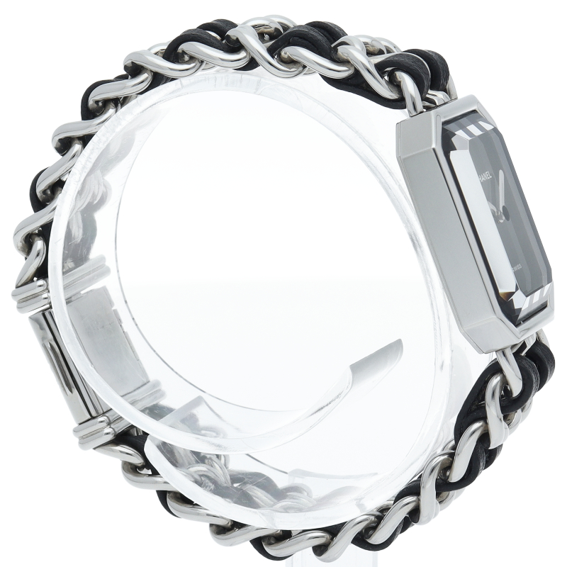 気品溢れるシャネルウォッチの定番モデルでプルミエールです。レザーがブレスに編みこまれたデザインが特徴的な1本。