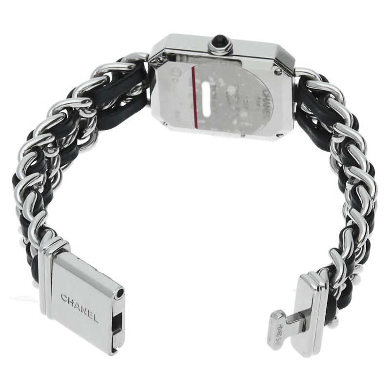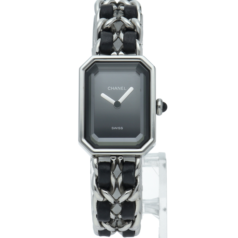 気品溢れるシャネルウォッチの定番モデルでプルミエールです。レザーがブレスに編みこまれたデザインが特徴的な1本。