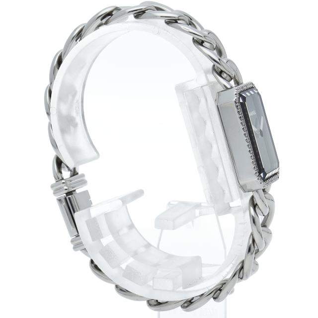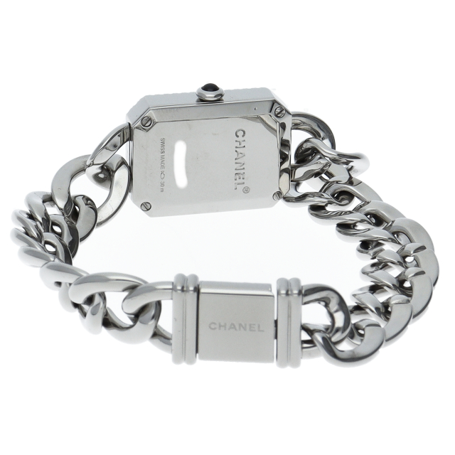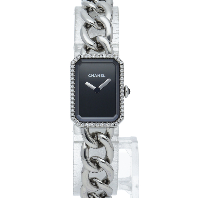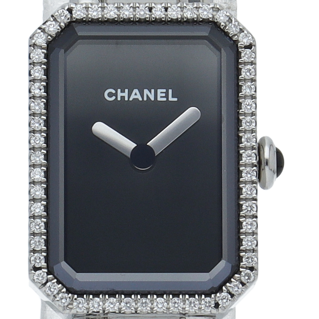シャネルの人気シリーズ「プルミエール」。ベゼルにはダイヤモンドを、文字盤にはホワイトシェルをセッティング、極めてシンプルなデザインながら、エレガンスを感じさせるところに上品さと高級感が増しております。