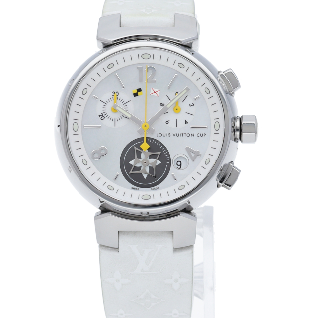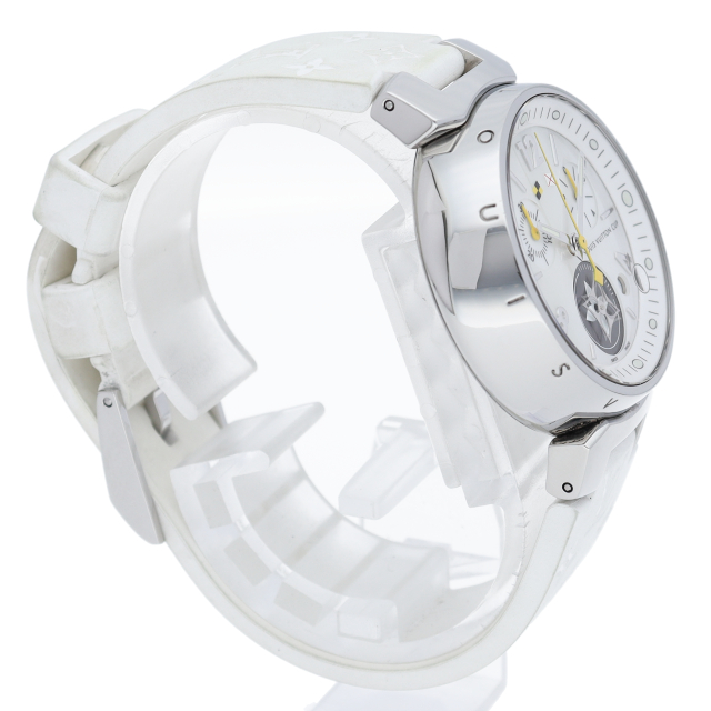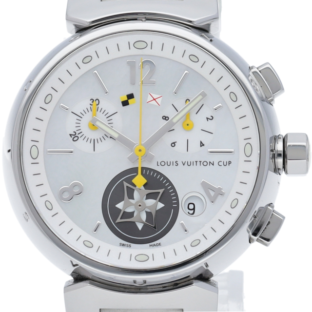 ルイ・ヴィトンのフラッグシップモデル「タンブール」の人気のラブリーカップ仕様です。クロノグラフ機能やデイト機能を備えてデザイン面や機能面も優れた1本。