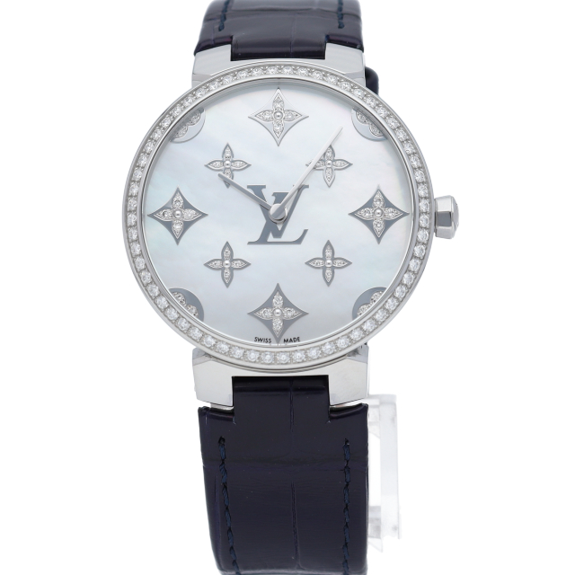 「タンブール モノグラム」は、ルイヴィトンの特徴であるモノグラムデザインを文字盤に取り入れたモデルです。ご自身でも簡単に付け替えられるストラップタイプですので、お好みのスタイルを楽しめます。