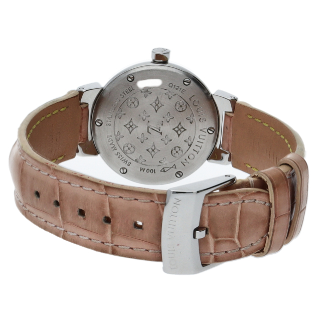 ルイ・ヴィトンのフラッグシップウォッチ「タンブール」。フォーマルにでもカジュアルにでも合わせられる便利な1本。細長い革ベルトが最大の特徴で、時計としてもアクセサリーの一つとしてもご使用いただけます。