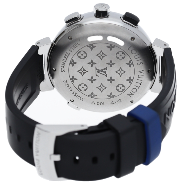 スポーティなラバーベルト、深みのあるブルーの文字盤、ルイ・ヴィトンの歴史的な「スティーマー・バッグ」のロゴ“V”からインスピレーションを得たデザインが特徴的。レガッタ機能(ヨットレース用カウントダウンタイマー)を搭載したモデルです。
