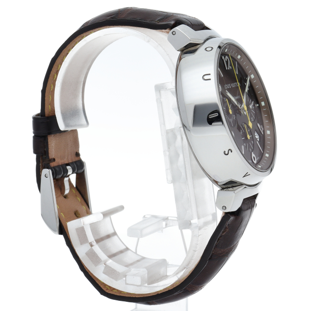 ルイ・ヴィトンのフラッグシップモデル「タンブール」。クロノグラフ機能やデイト機能を備えてデザイン面や機能面も優れた1本。スタイルを選ばずに着用できます。
