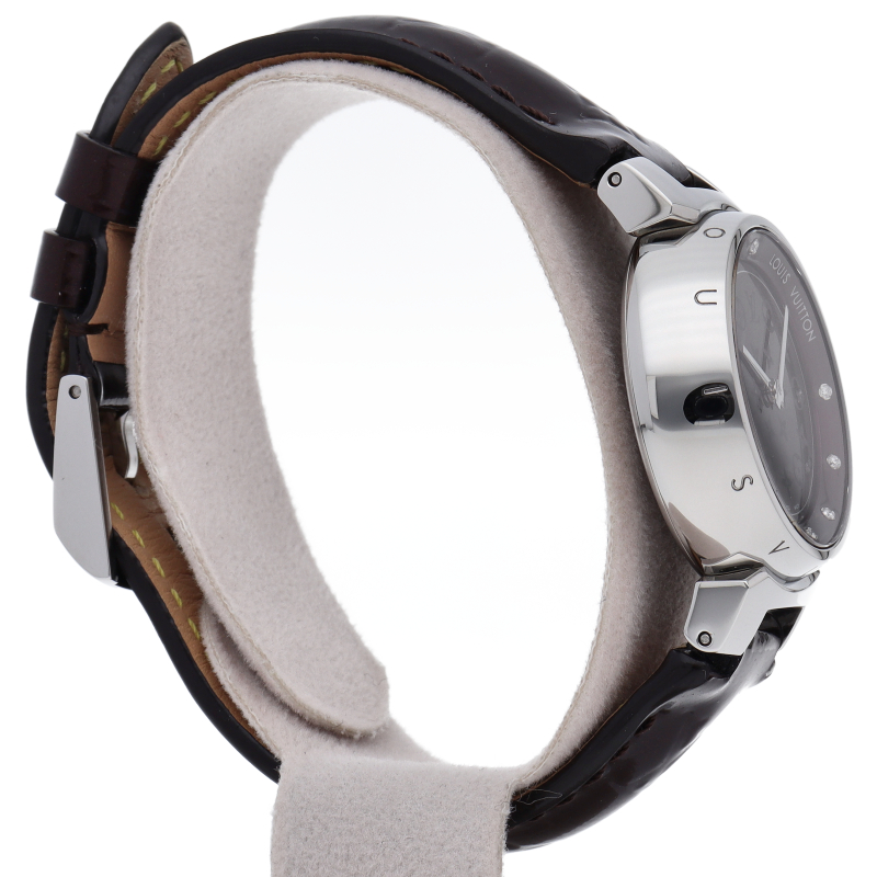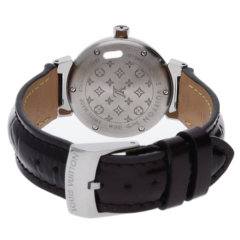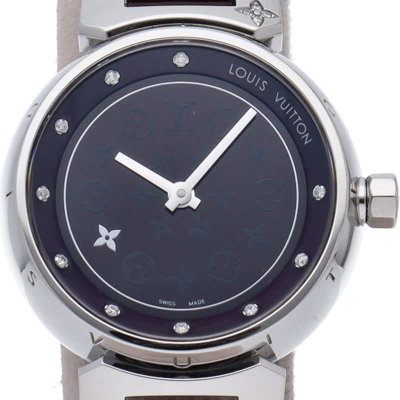 ルイ・ヴィトンのフラッグシップウォッチ「タンブール」。上品でシンプルなデザインでどんなスタイルにも合わせられます。インデックスには10Pダイヤモンドが施された高級感溢れる1本です。