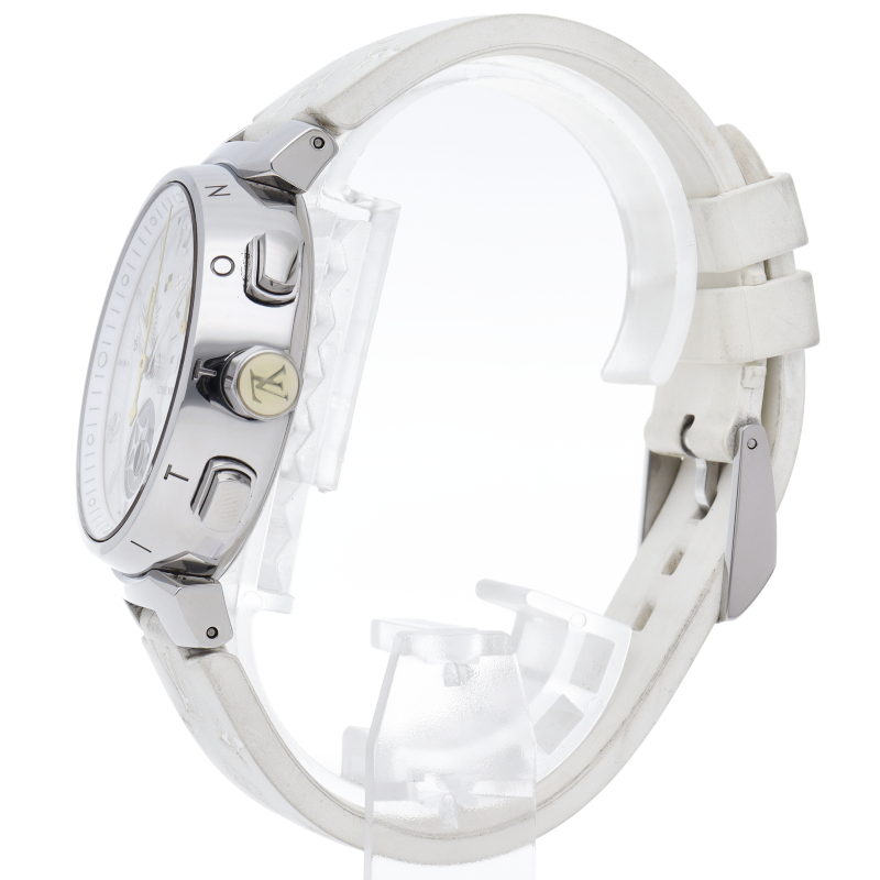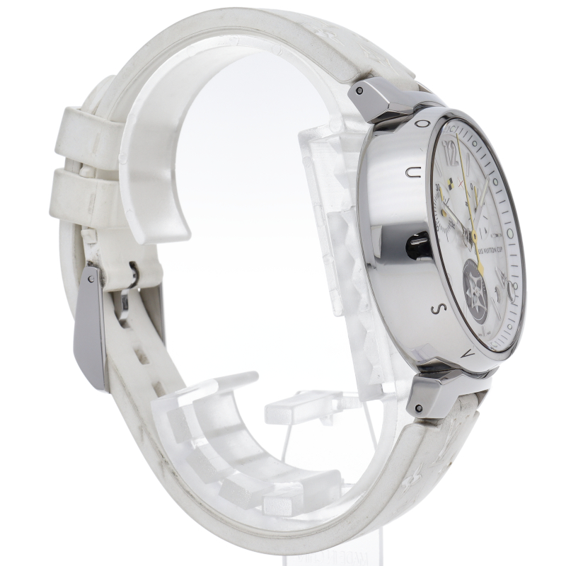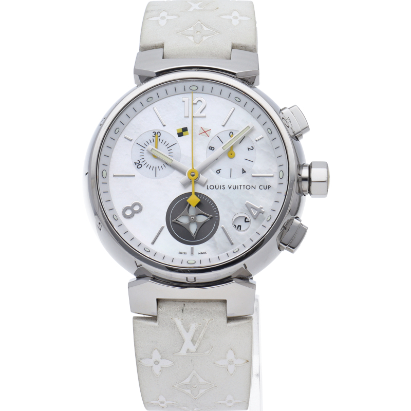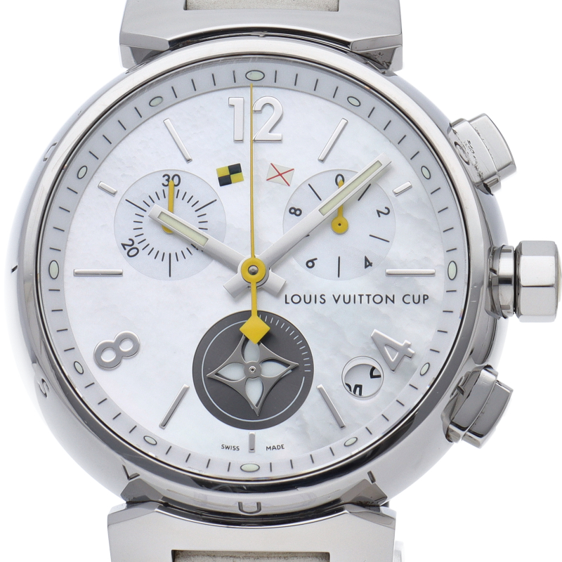2002年のコレクション誕生以来、絶大な人気を誇る「タンブール」。タンブール ラブリーカップは、ルイ・ヴィトンならではの現代の女性の為のリストウォッチです。ダイヤルにホワイトシェルを用いることで、可愛らしさと高級感を演出しています。