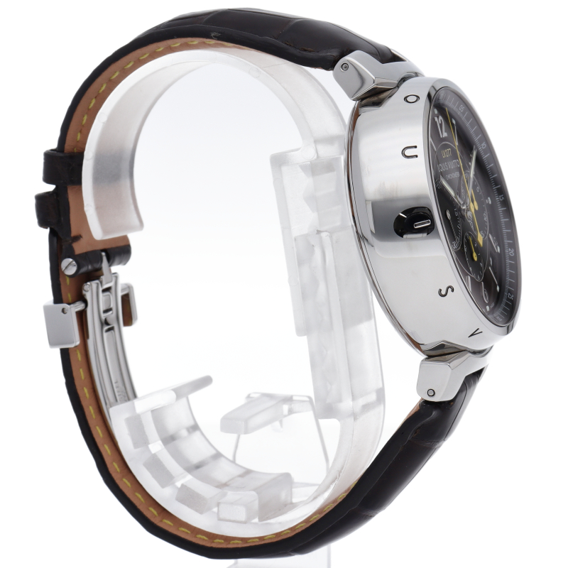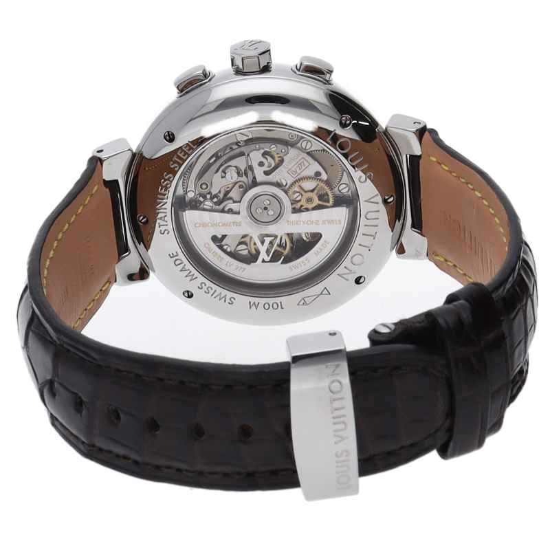 ルイ・ヴィトンのフラッグシップウォッチ「タンブール」。ゼニスの傑作「エルプリメロ」ベースのムーブメントが組まれた、非常に高精度のモデルです。