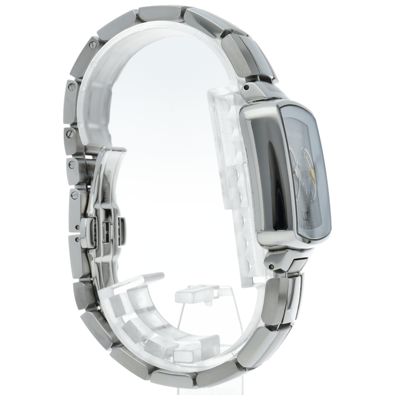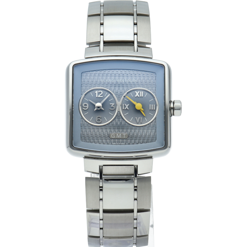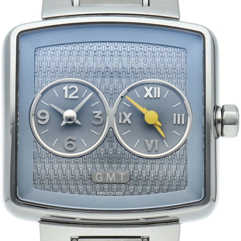 ルイヴィトンから「スピーディデュオジェッド」レディース腕時計です。スクエアタイプのケースにさわやかなカラーのダイアルが印象的な逸品です。