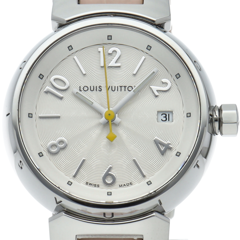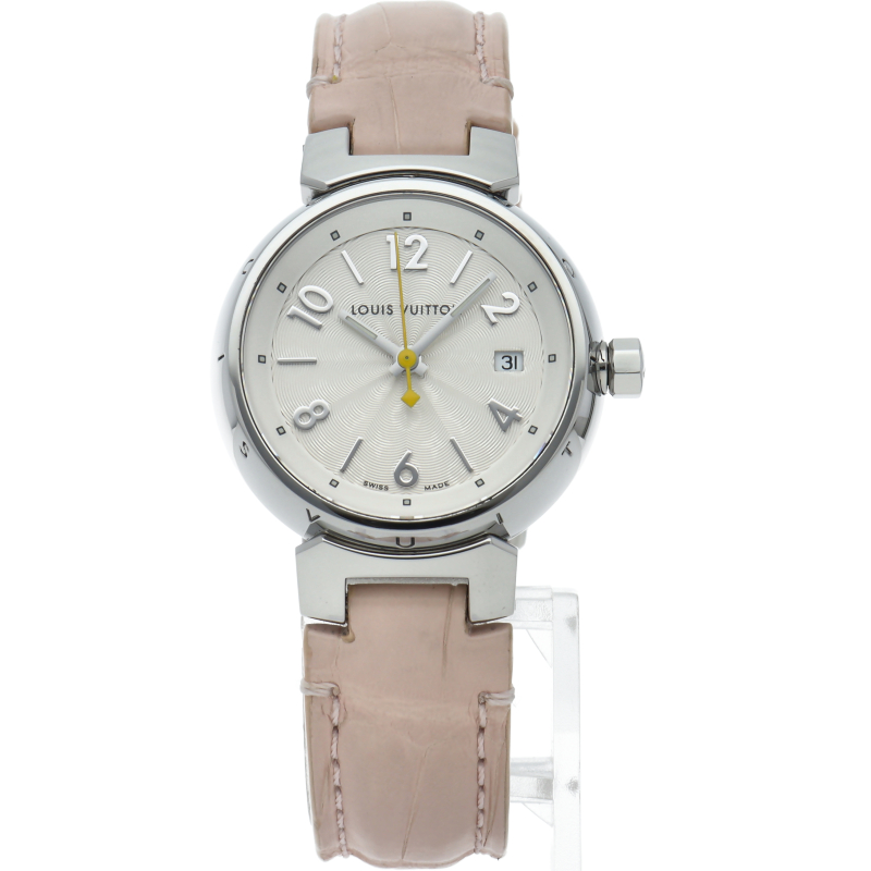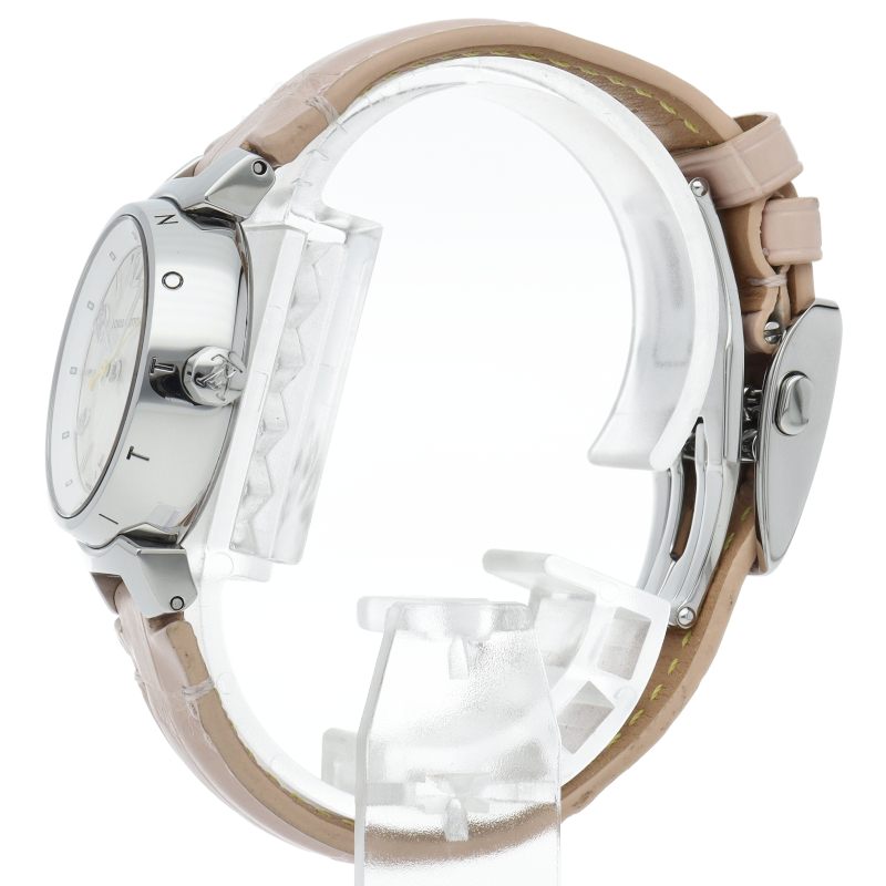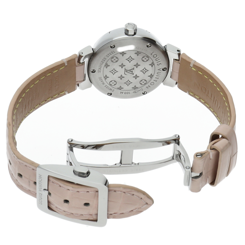 ルイ・ヴィトンのフラッグシップウォッチ「タンブール」。上品でシンプルなデザイン、ピンクのアリゲーターストラップで華やかにお付けいただけます。