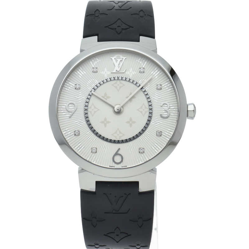 ルイ・ヴィトンのアイコンであるモノグラム・パターンを施した薄型のウォッチ。2002年のコレクション誕生以来、人気シリーズとなっている「タンブール」を薄型にし、ルイ・ヴィトンが特許を取得した、簡単に付け替えられるストラップが与えられたモデルになります。