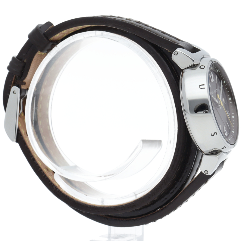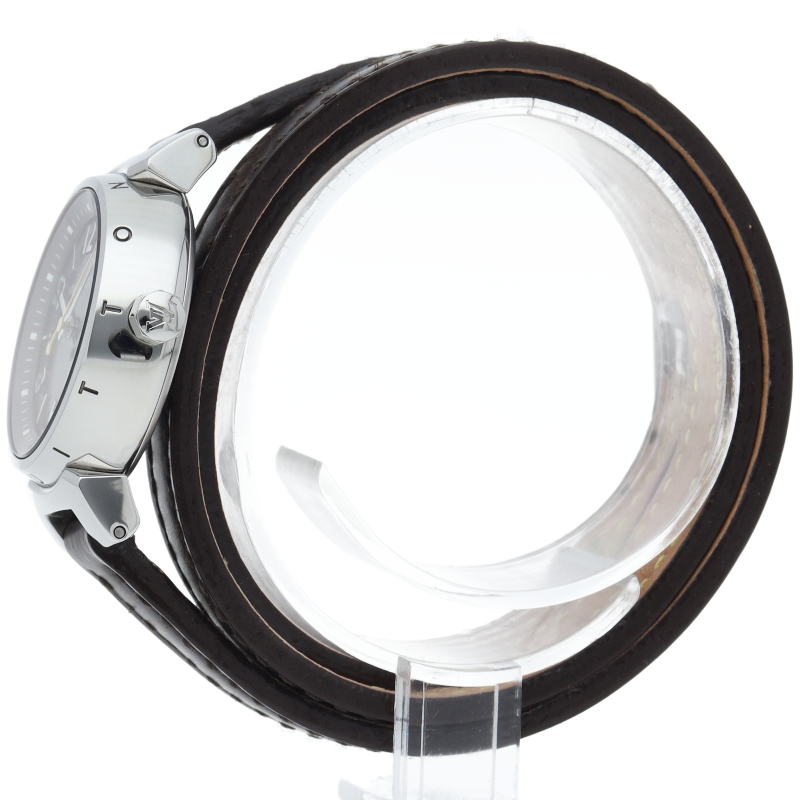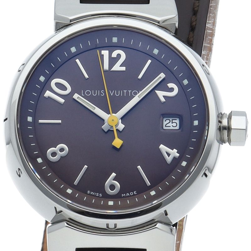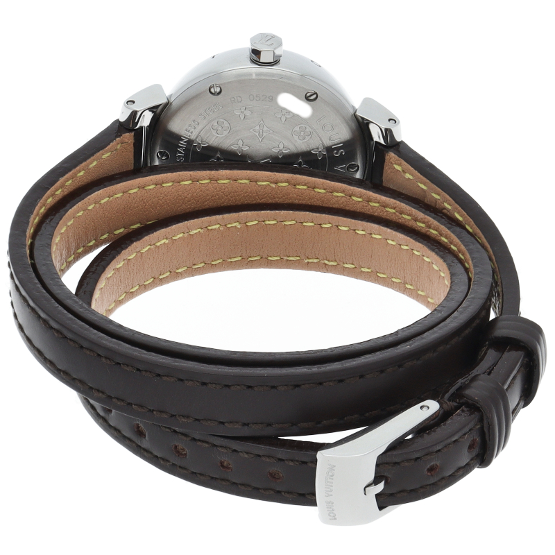 ルイ・ヴィトンのフラッグシップウォッチ「タンブール」。フォーマルにでもカジュアルにでも合わせられる便利な1本。細長い革ベルトが最大の特徴で、時計としてもアクセサリーの一つとしてもご使用いただけます。