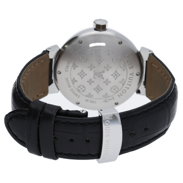 ルイ ヴィトンのフラッグシップウォッチ「タンブール」。こちらは2ヶ国の時間を同時に確認する事ができるGMT機能付。デザインもシンプルでオススメの1本。