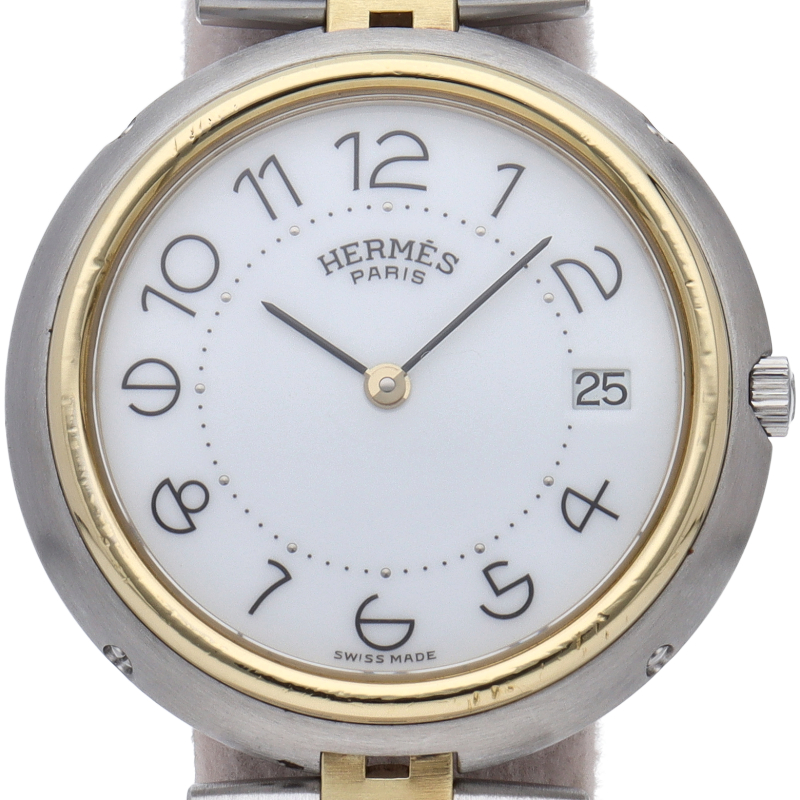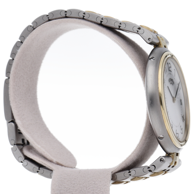 エルメスの時計シリーズの中でもシンプルなデザインのプロフィール。「H」ロゴをセンターに取り入れたブレスにゴールドカラーと白文字盤が上品で落ち着いたデザインが大人の雰囲気を演出します。