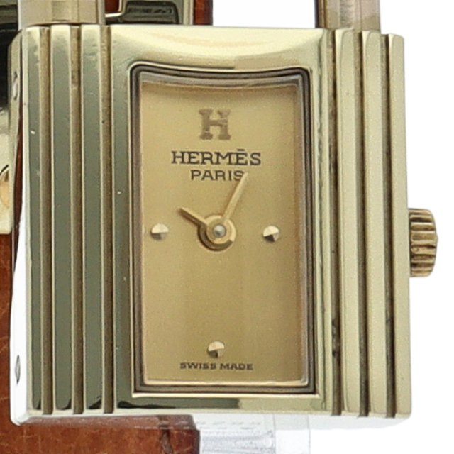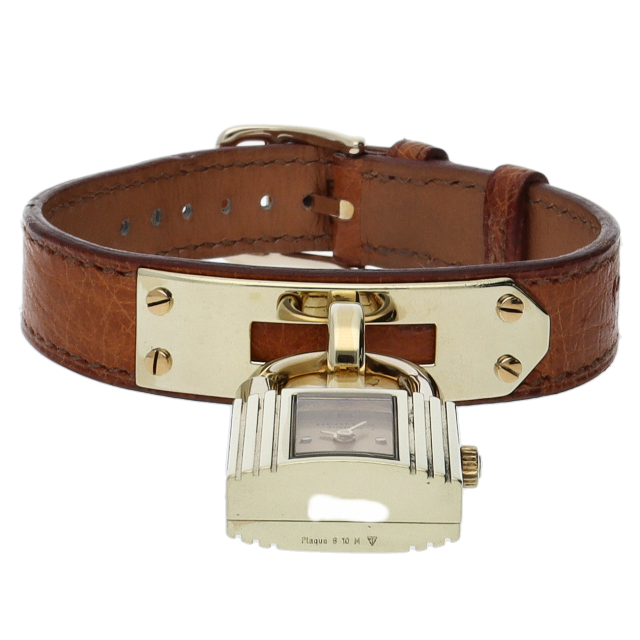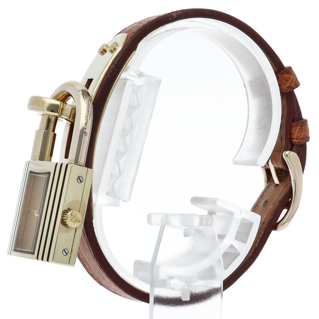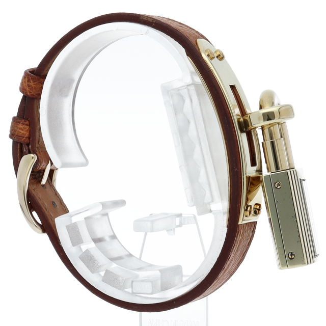 南京錠モチーフが可愛らしい、エルメスのケリーウォッチです。エルメスならではの優美な雰囲気を漂わせたアクセサリー感覚でお使いいただける1本。□A刻印。