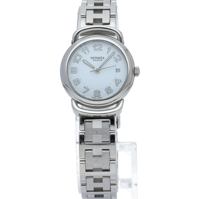 シンプルなデザインが魅力の『プルマン』。視認性の高いダイヤルに日付けがあり、使いやすいこと間違いなし。エルメスの「H」をモチーフにしたブレスレットが魅力です。
