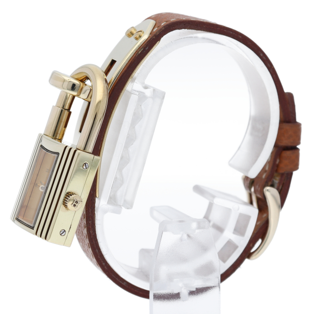 南京錠モチーフが可愛らしい、エルメスのケリーウォッチです。エルメスならではの優美な雰囲気を漂わせたアクセサリー感覚でお使いいただける1本。○Z刻印。