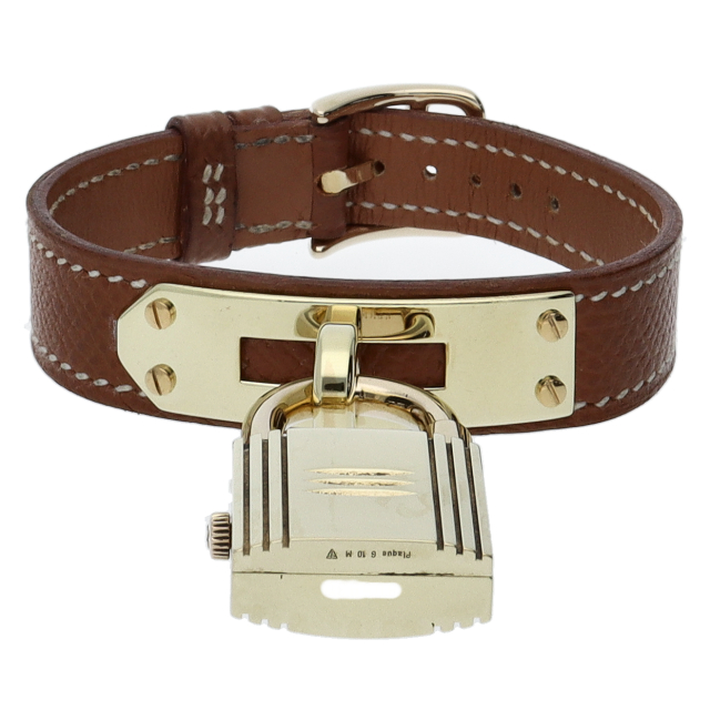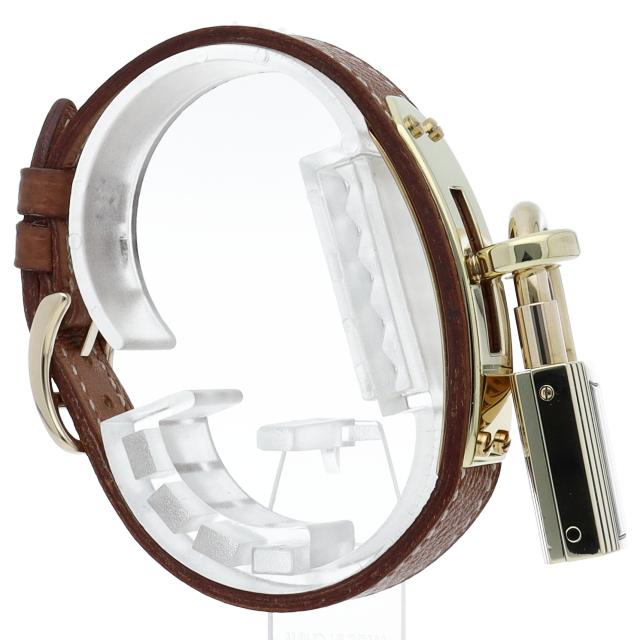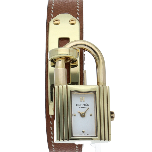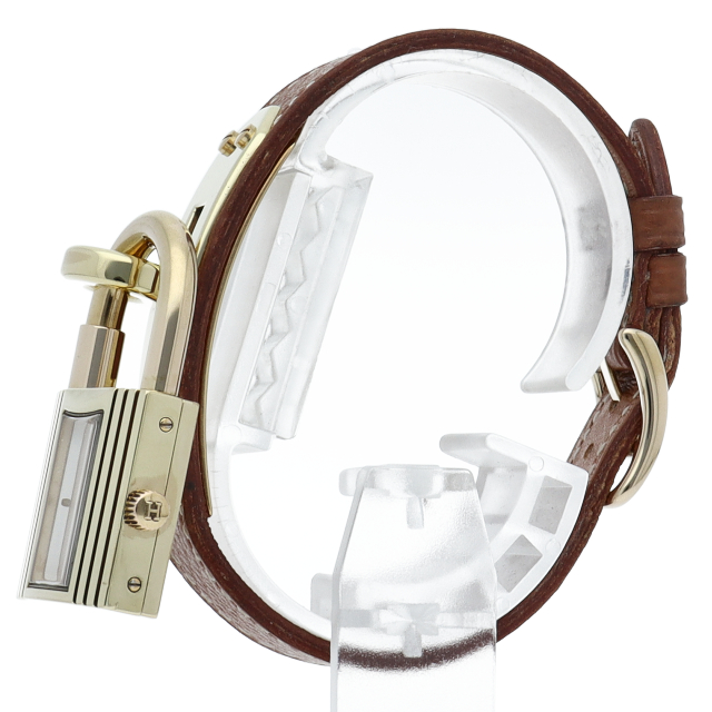 南京錠モチーフが可愛らしい、エルメスのケリーウォッチです。エルメスならではの優美な雰囲気を漂わせたアクセサリー感覚でお使いいただける1本。○Y刻印。