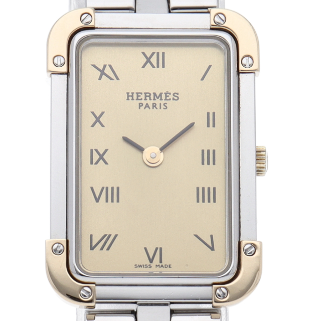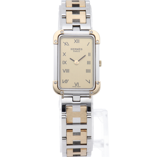 エルメスの細長いケースにHのブレスが特徴的なレディース時計です。豪華なコンビ仕様で素敵な1本です。