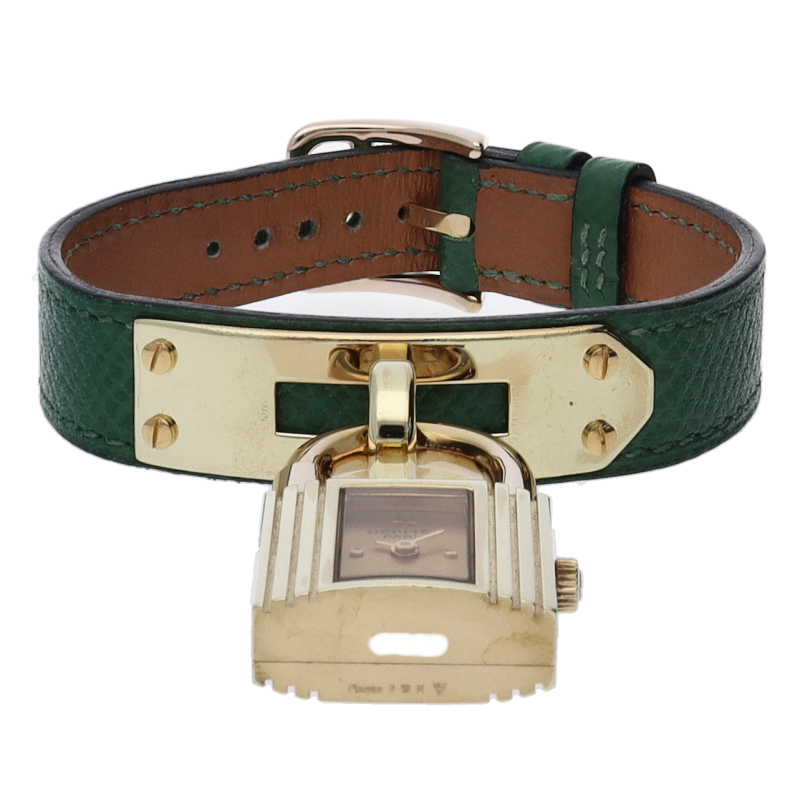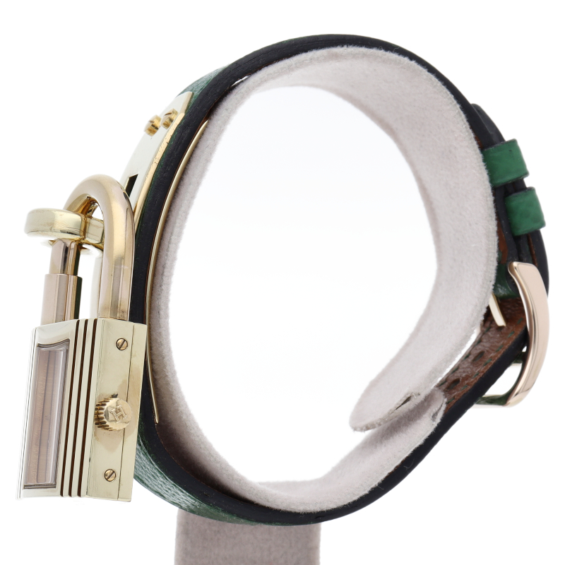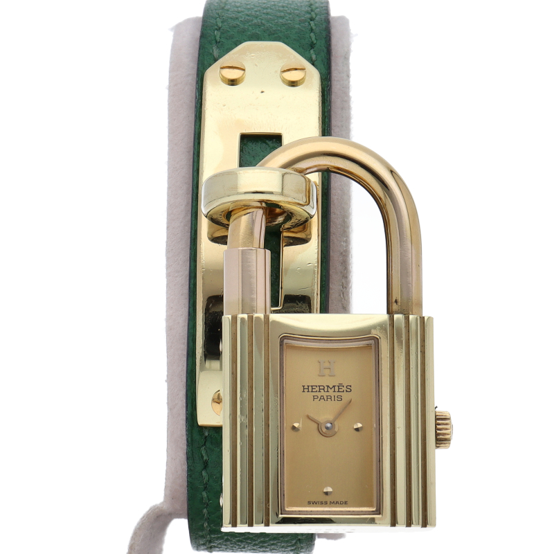南京錠モチーフが可愛らしい、エルメスのケリーウォッチです。エルメスならではの優美な雰囲気を漂わせたアクセサリー感覚でお使いいただける1本。○Y刻印。