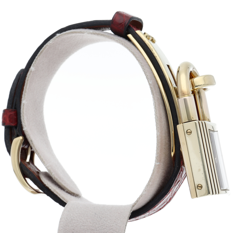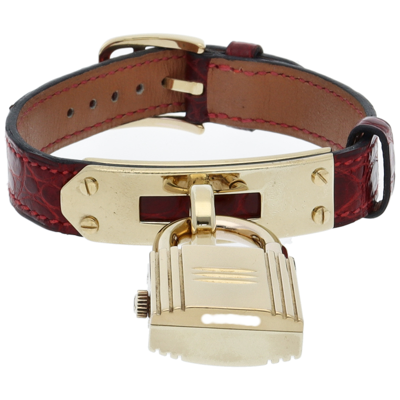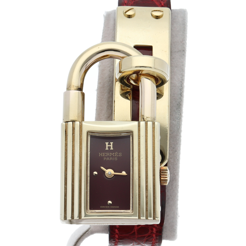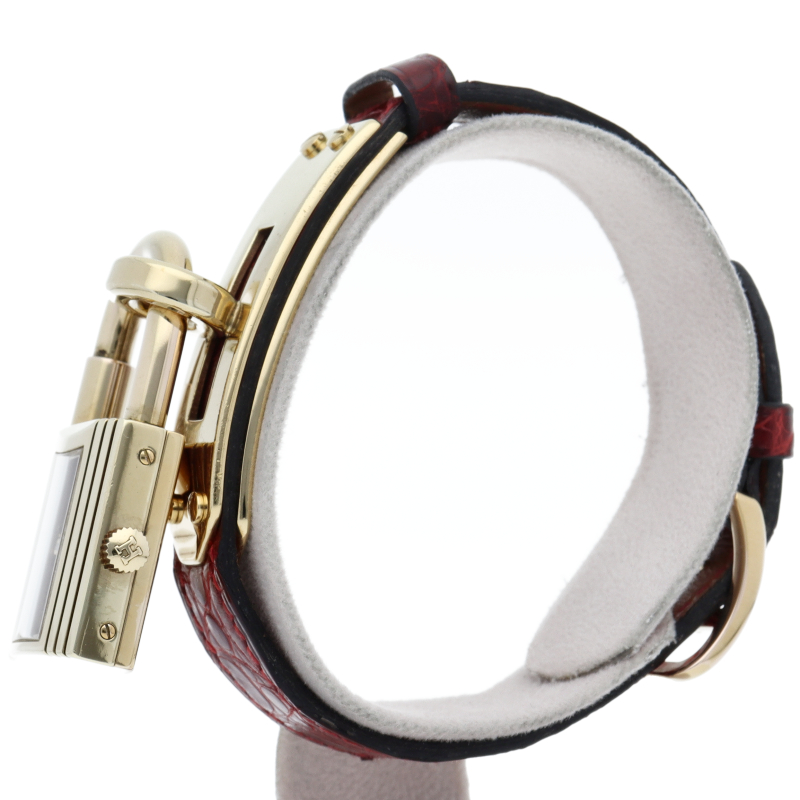 南京錠モチーフが可愛らしい、エルメスのケリーウォッチです。エルメスならではの優美な雰囲気を漂わせたアクセサリー感覚でお使いいただける1本。○U刻印。