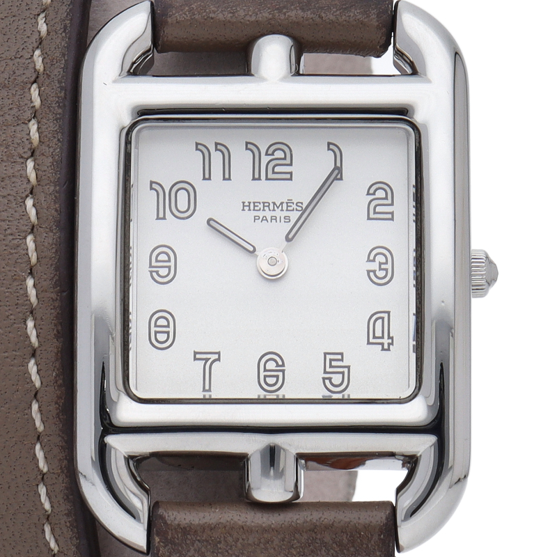 エルメスの時計シリーズの中でも安定した人気を誇る「ケープコッド」。シンプルなデザインながら上品な雰囲気が漂う1本。デイリーウォッチにもオススメです。□N刻印。