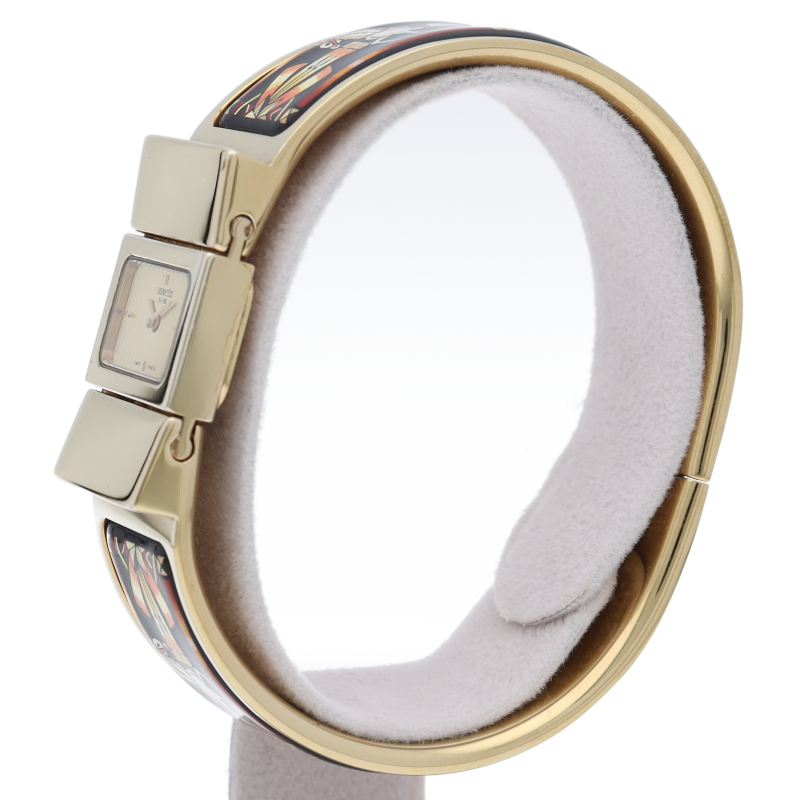 綺麗な七宝焼きに高級感を受けます。時計としてはもちろん、いつもの服装にアクセントとして、アクセサリー感覚でもご使用頂けます。ケース本体を少し左にスライドするだけで付け外し可能な商品なので、使い勝手がよい商品です。