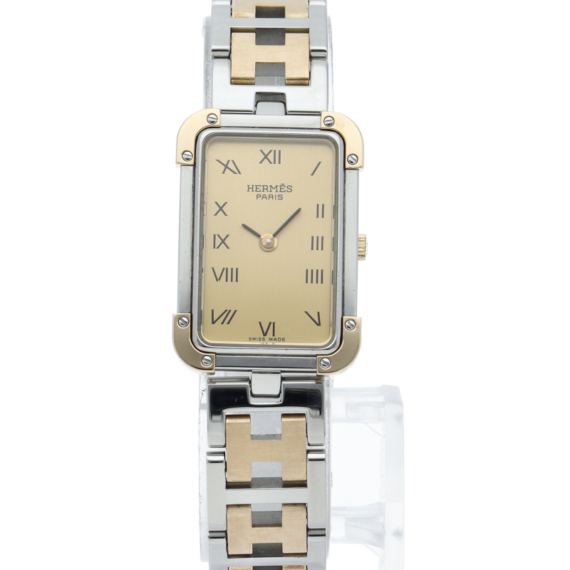 エルメスの細長いケースにHのブレスが特徴的なレディース時計です。豪華なコンビ仕様で素敵な1本です。