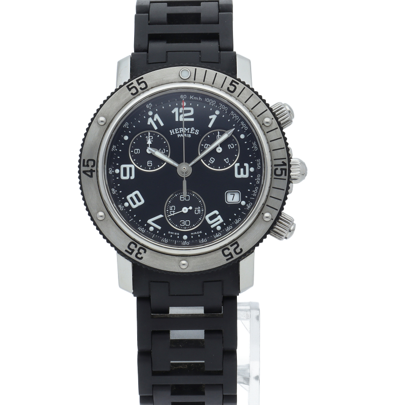 エルメスの時計シリーズの中でも非常にポピュラーな「クリッパー」。「H」ロゴを特徴としたブレスに上品で落ち着いたデザインが大人の雰囲気を演出します。