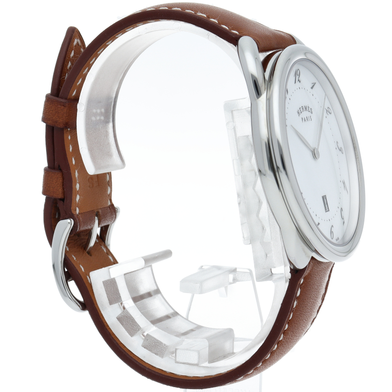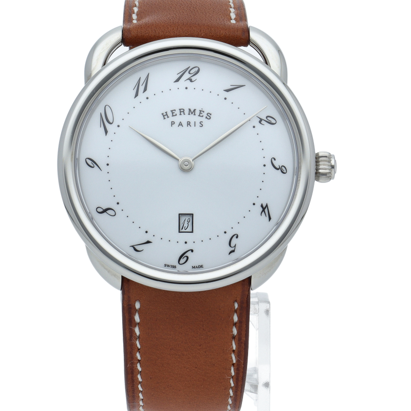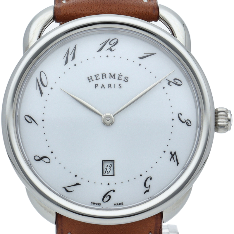 エルメス時計の始まりであるアルソーは、ARCEAU「鐙(あぶみ)」という意味。流れるようなアラビアインデックスが特徴的なシリーズです。