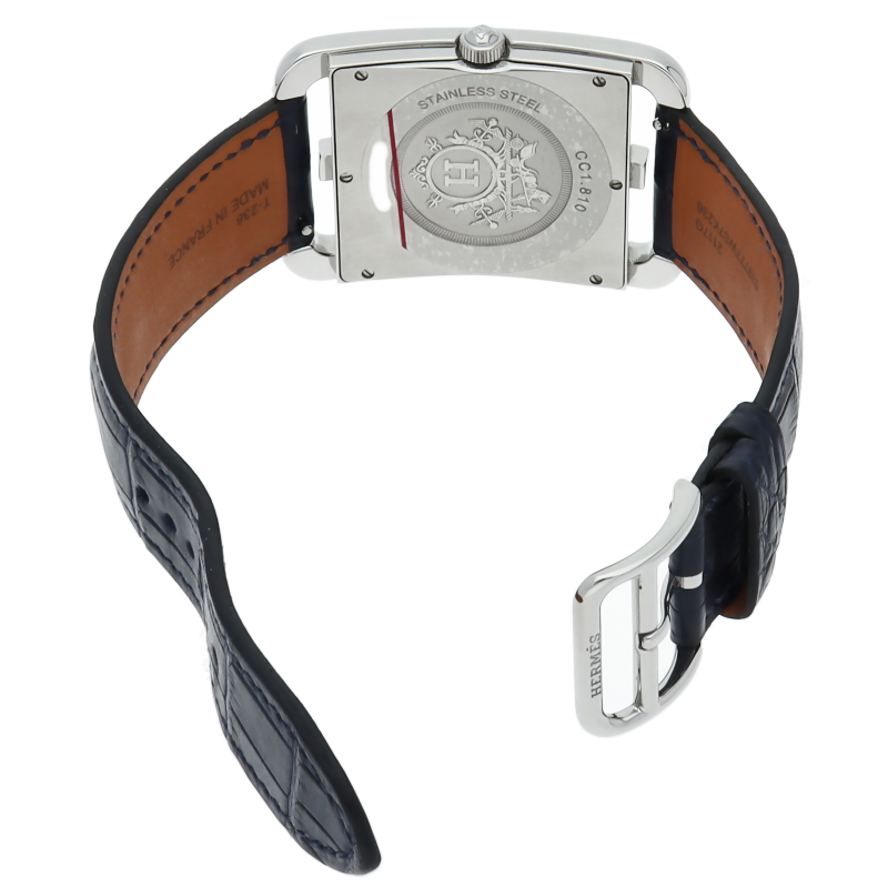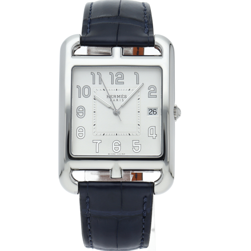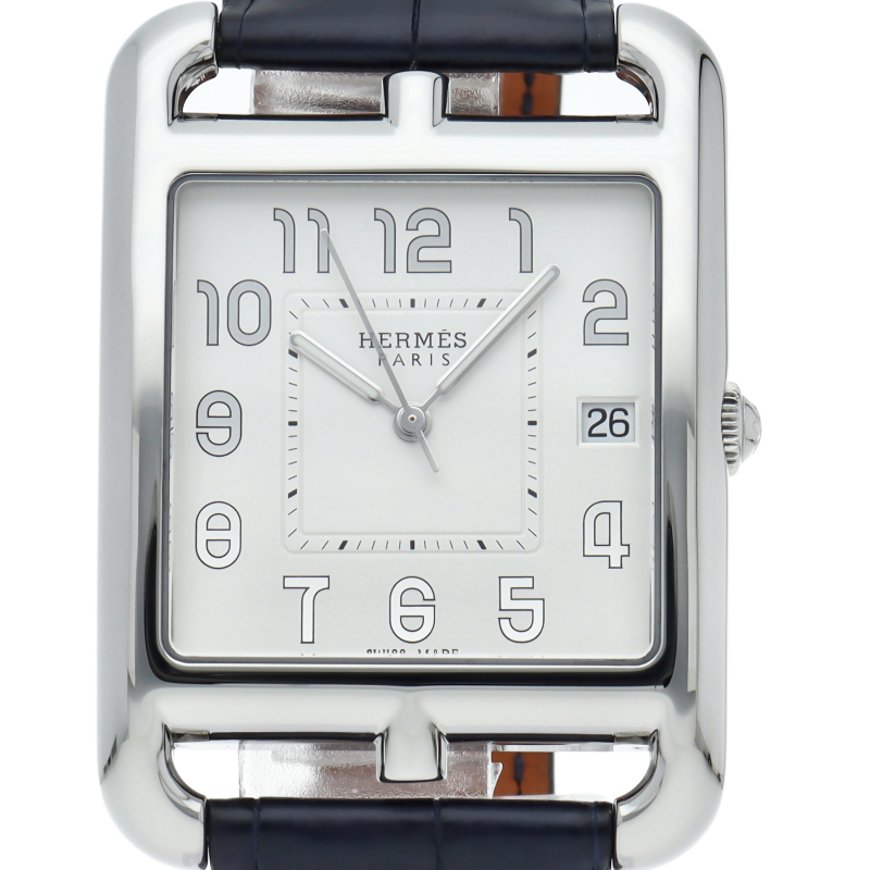 定番のHウォッチと並んで人気の高いモデル“ケープコッド。ポップなインデックスのフォント、そしてラグのデザイン。直線と曲線が見事に融合を果たした印象的なこのデザインは、エルメスのデザイナー、アンリ・ドリニーの手によって、同社を代表するブレスレット“シェーヌ・ダンクルから着想を得てデザインされたと言われています。