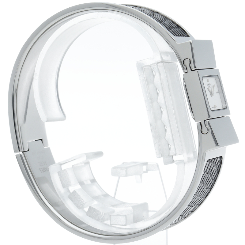 時計としてはもちろん、いつもの服装にアクセントとして、アクセサリー感覚でもご使用頂けます。ケース本体を少し左にスライドするだけで付け外し可能な商品なので、使い勝手がよい商品です。
