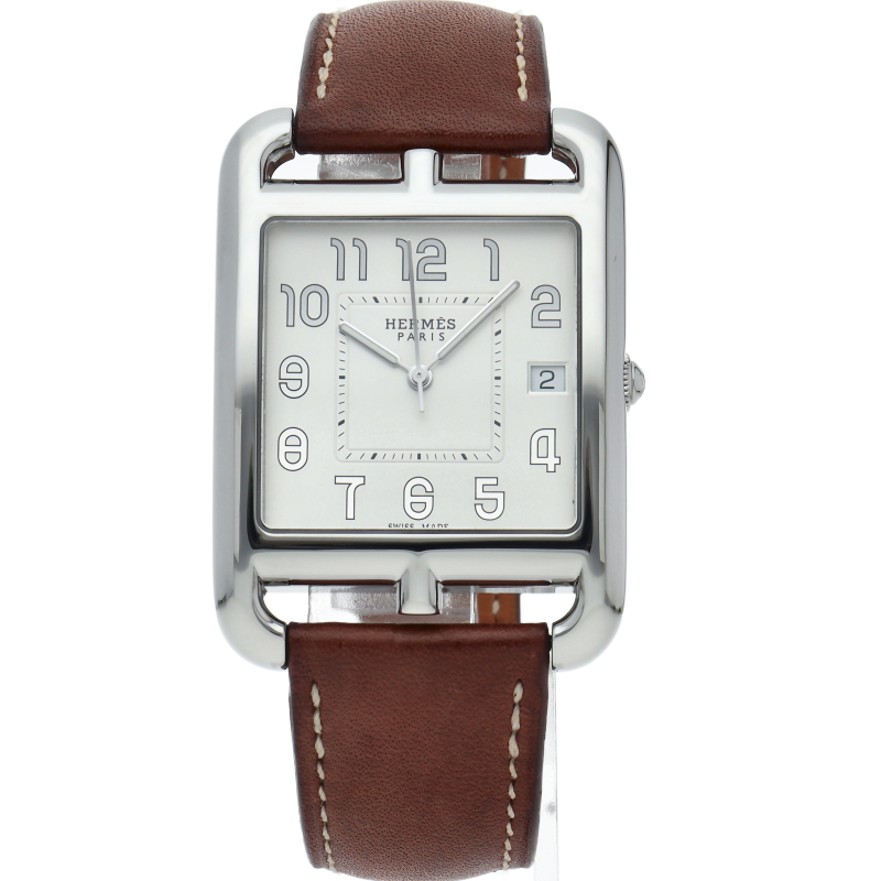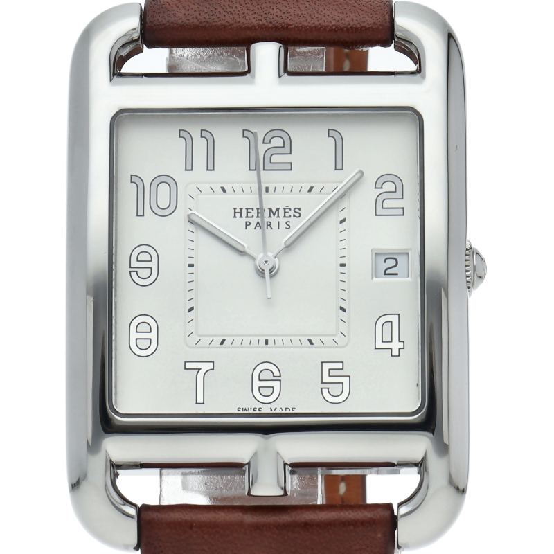 定番のHウォッチと並んで人気の高いモデル“ケープコッド。ポップなインデックスのフォント、そしてラグのデザイン。直線と曲線が見事に融合を果たした印象的なこのデザインは、エルメスのデザイナー、アンリ・ドリニーの手によって、同社を代表するブレスレット“シェーヌ・ダンクルから着想を得てデザインされたと言われています。