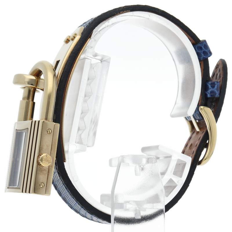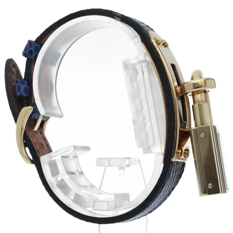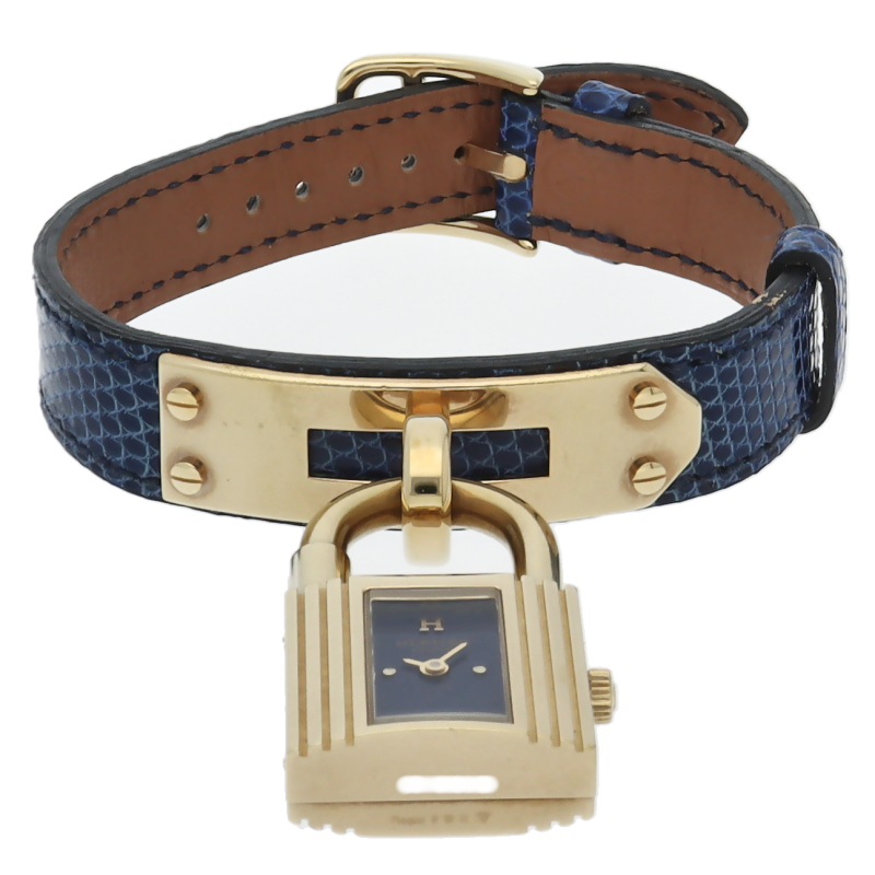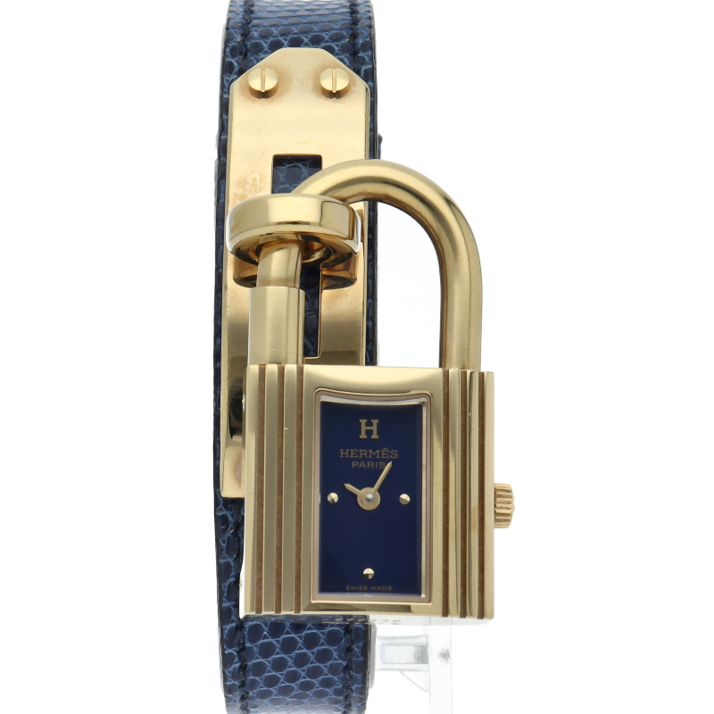 南京錠モチーフが可愛らしい、エルメスのケリーウォッチです。エルメスならではの優美な雰囲気を漂わせたアクセサリー感覚でお使いいただける1本。□Y刻印。