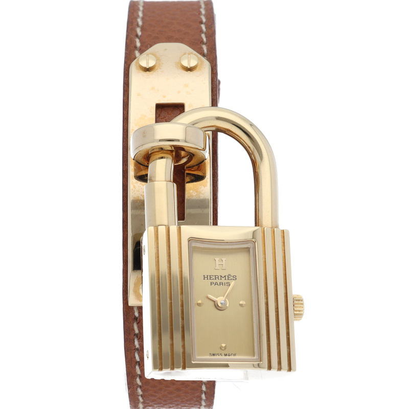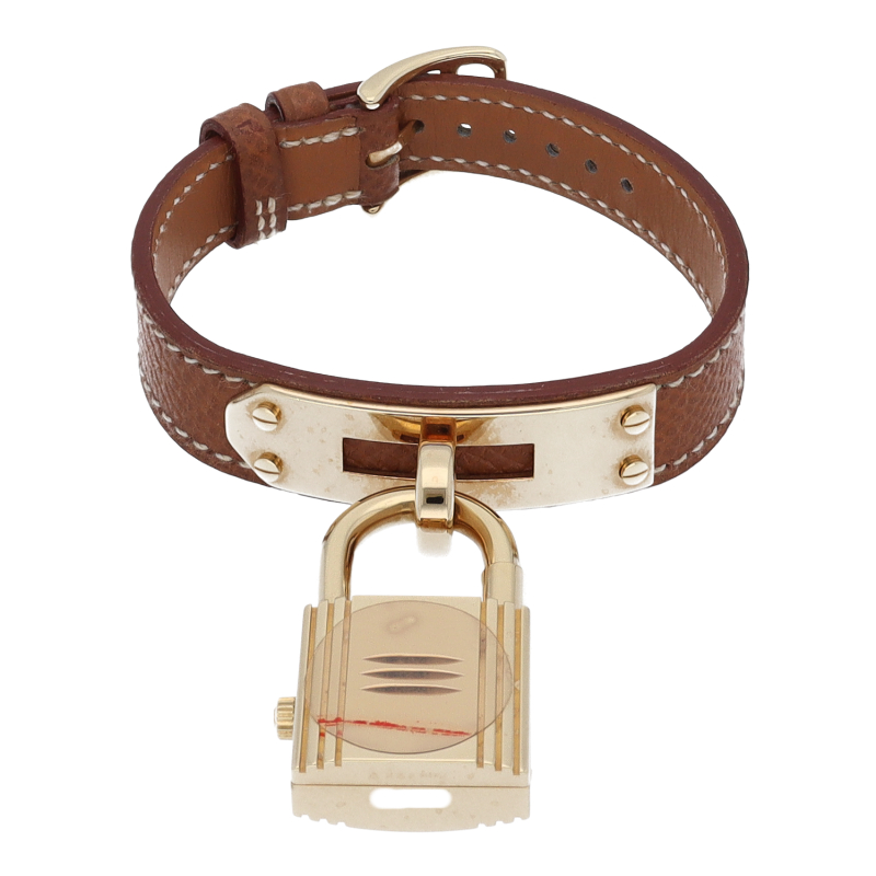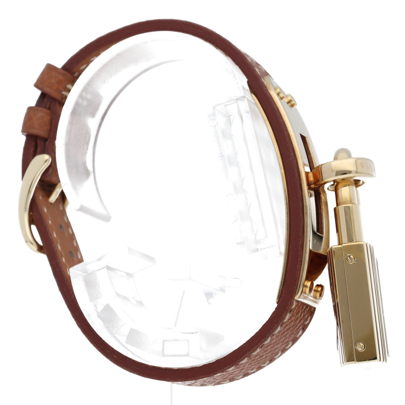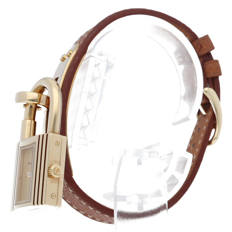 南京錠モチーフが可愛らしい、エルメスのケリーウォッチです。エルメスならではの優美な雰囲気を漂わせたアクセサリー感覚でお使いいただける1本。□Z刻印。