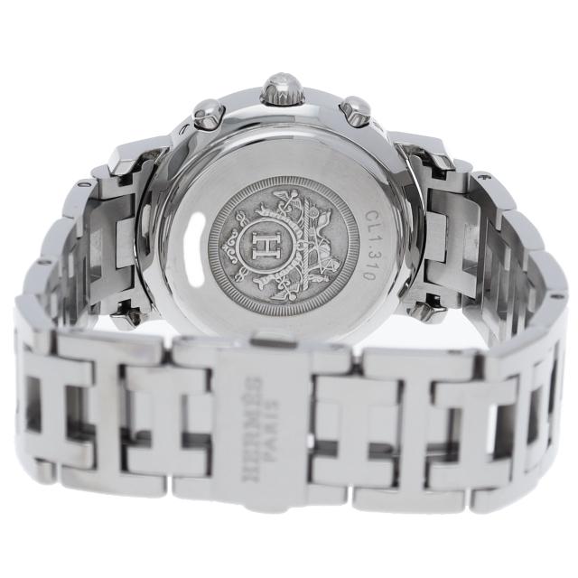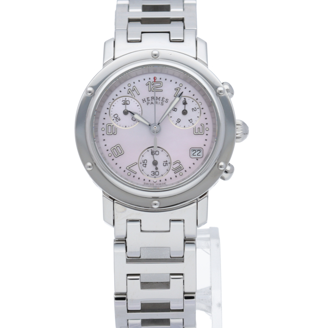 エルメスの時計シリーズの中でも非常にポピュラーな「クリッパー」。「H」ロゴを特徴としたブレスで、クロノグラフ機能付。シェル文字盤。