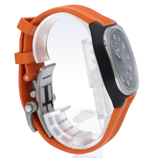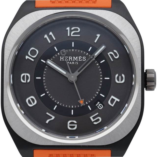 0と8の数字をモチーフにしたエルメスらしいデザイン性の高さを感じる2021年の新作、「H08(エイチ・オー・エイト)」シリーズです。ケース素材に用いられたグラフェン複合素材は、堅牢かつ超軽量な炭素のグラファイト同素体です。時計製造に使用されている最も軽い素材の一つであると言われる特殊な素材です。SP1.741(W049430WW00)。