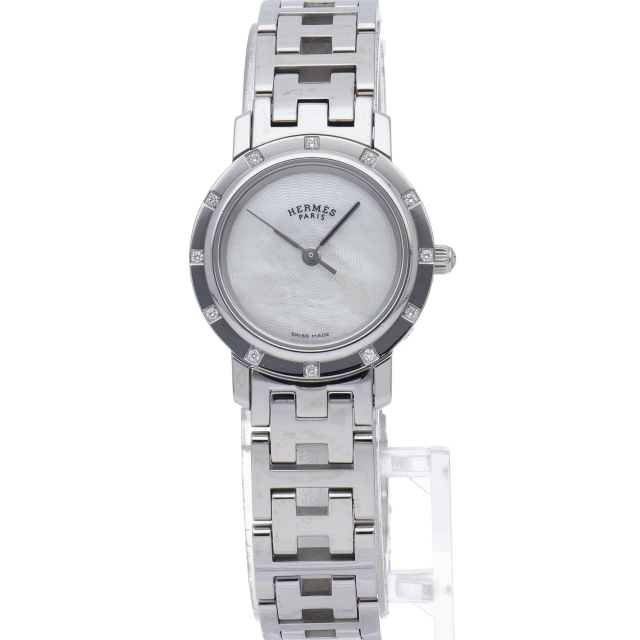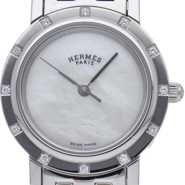エルメスの時計シリーズの中でも非常にポピュラーな「クリッパー」。ベゼルにダイヤモンドが12Pセットされた豪華なデザインです。