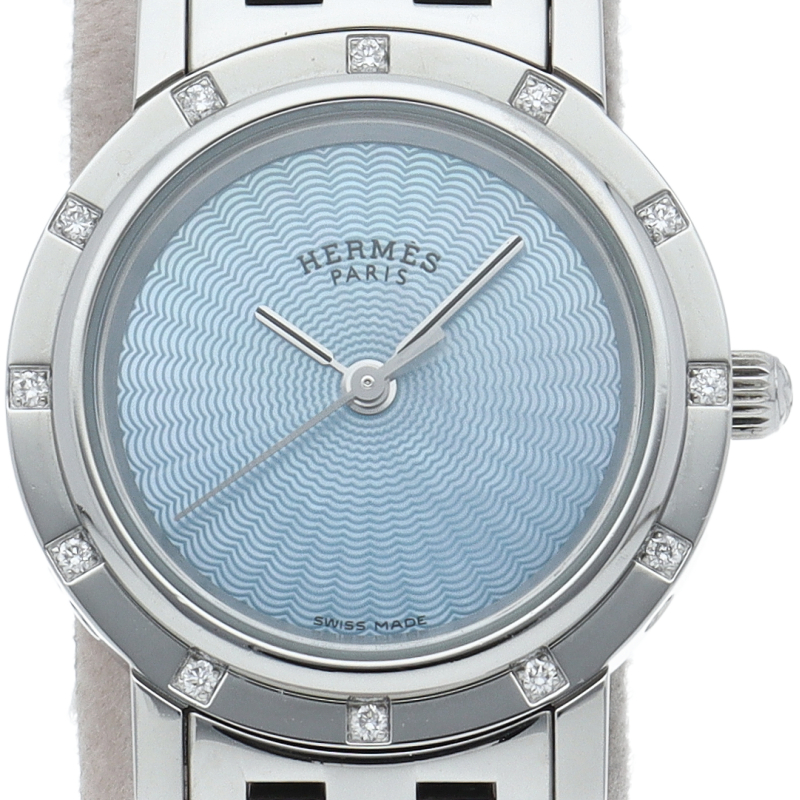 エルメスの時計シリーズの中でも非常にポピュラーな「クリッパー」。ベゼルにダイヤモンドが12Pセットされた豪華なデザインです。
