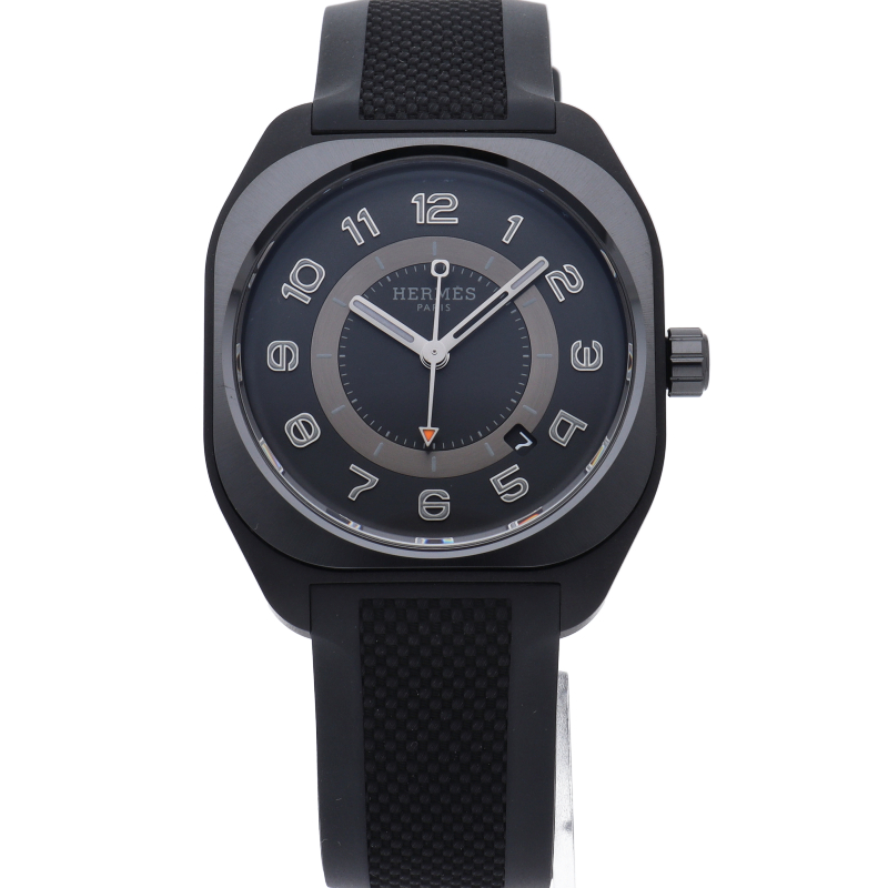 0と8の数字をモチーフにしたエルメスらしいデザイン性の高さを感じる2021年の新作、「H08(エイチ・オー・エイト)」シリーズです。ケース素材に用いられたグラフェン複合素材は、堅牢かつ超軽量な炭素のグラファイト同素体です。時計製造に使用されている最も軽い素材の一つであると言われる特殊な素材です。SP1.742/W049433WW00。