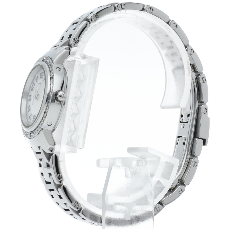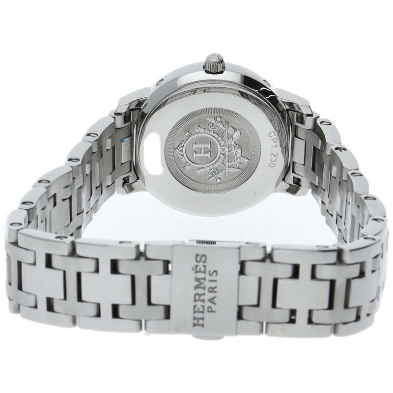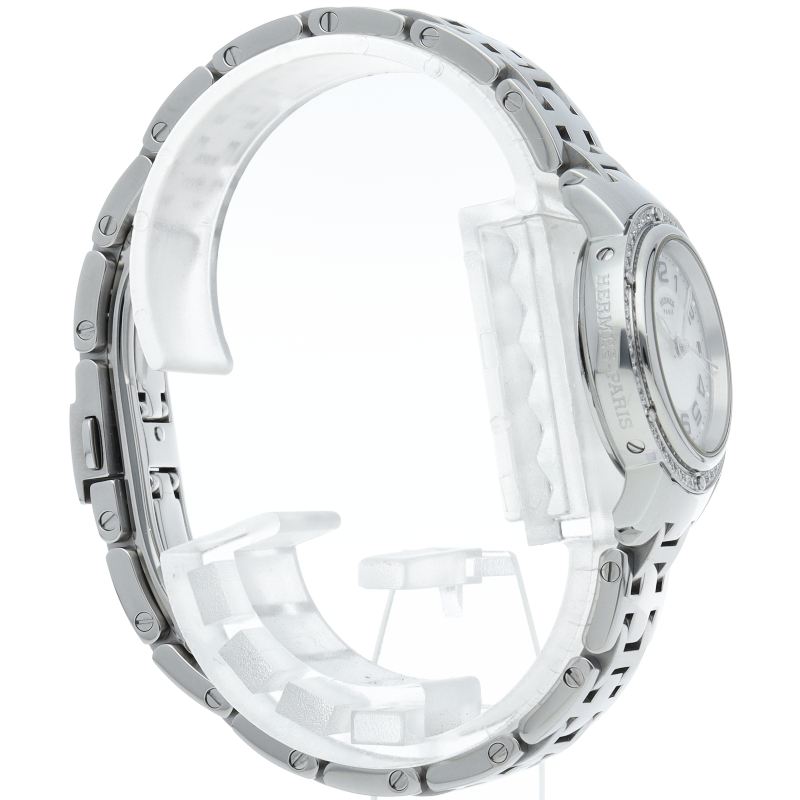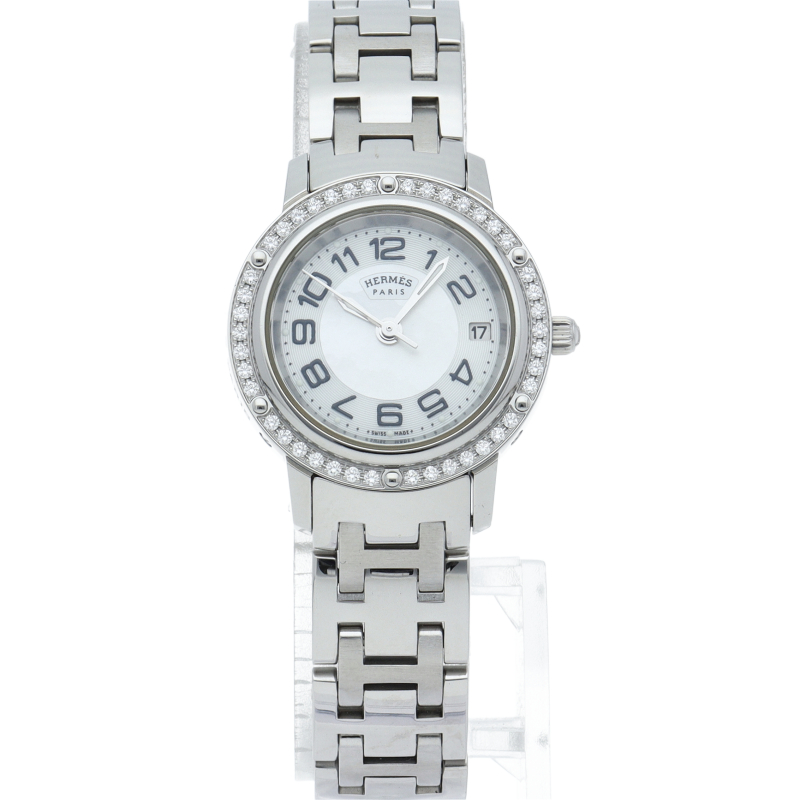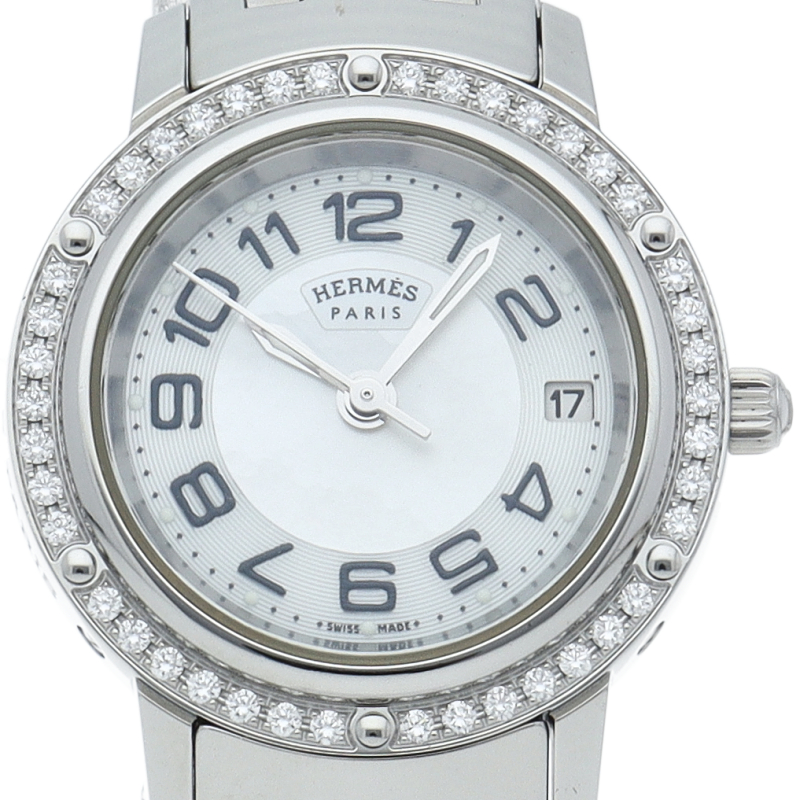 エルメスの時計シリーズの中でも非常にポピュラーな「クリッパー」。ベゼルにダイヤモンドがセットされた豪華なデザインです。