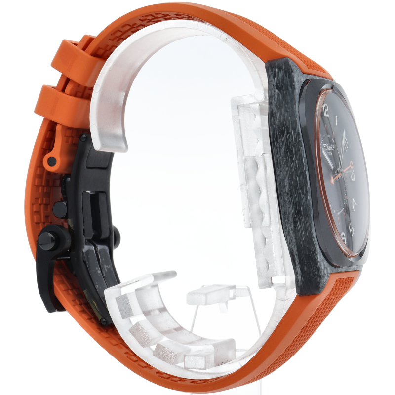 0と8の数字をモチーフにしたエルメスらしいデザイン性の高さを感じる2021年の新作、「H08(エイチ・オー・エイト)」シリーズです。搭載された「Cal.H1837」は、パルミジャーニフルリエのムーブメント部門として知られるヴォーシェ・マニュファクチュール・フルリエの「Cal.3002」をベースとしてエルメス専用に製造されたもので、時計ファンにも納得していただける1本です。SP1.746c/W402992WW00。