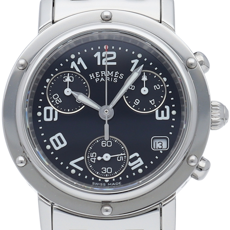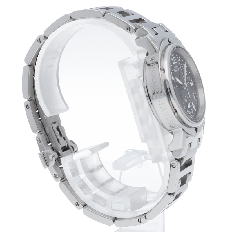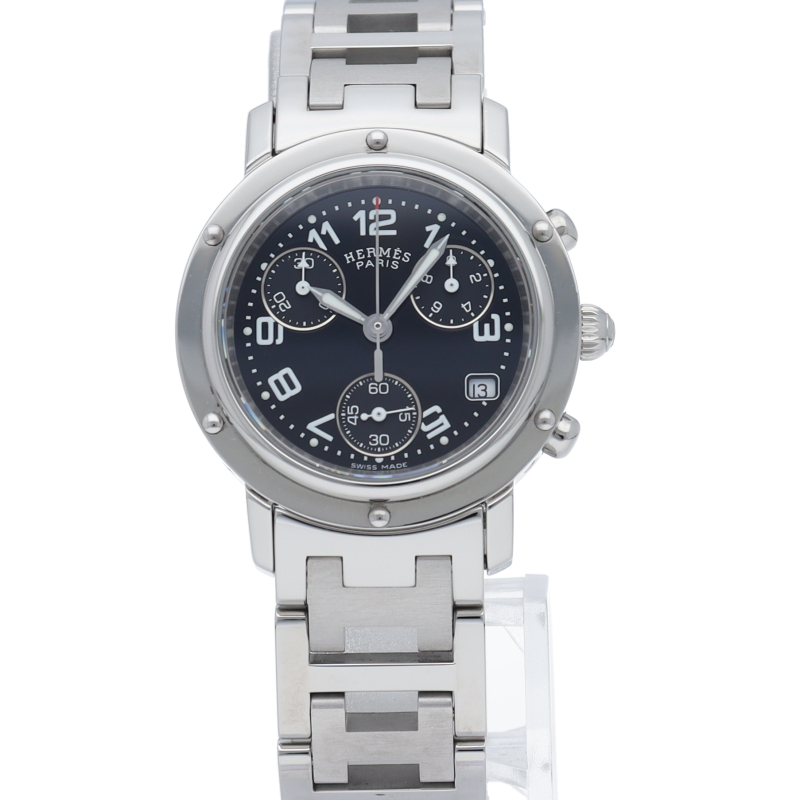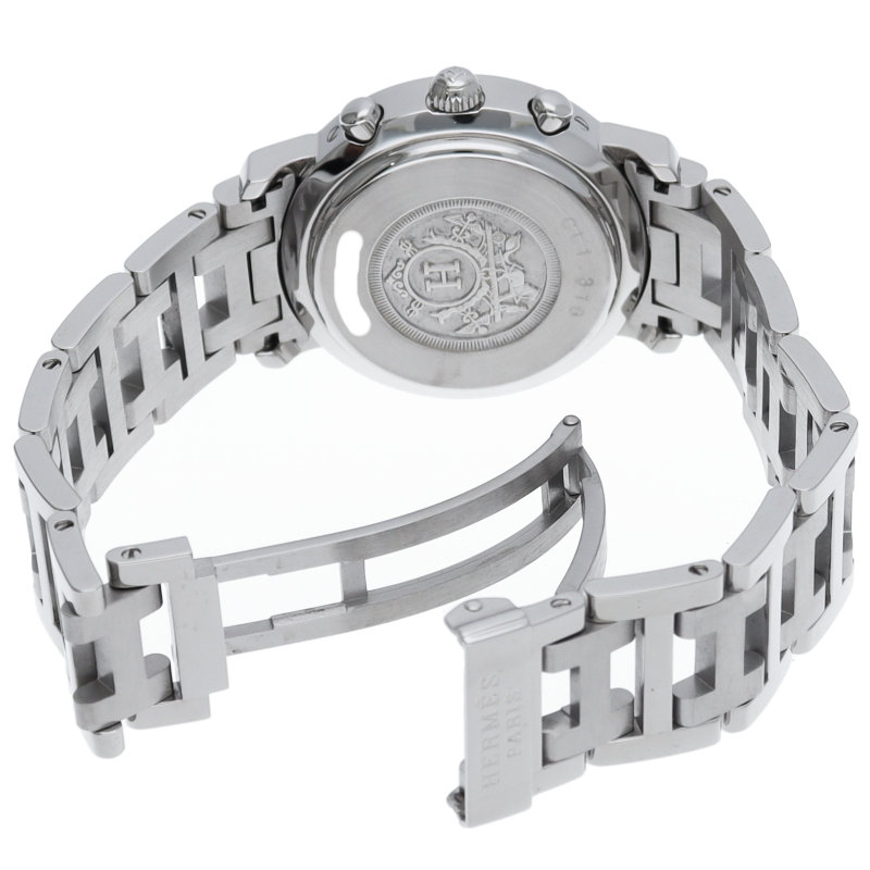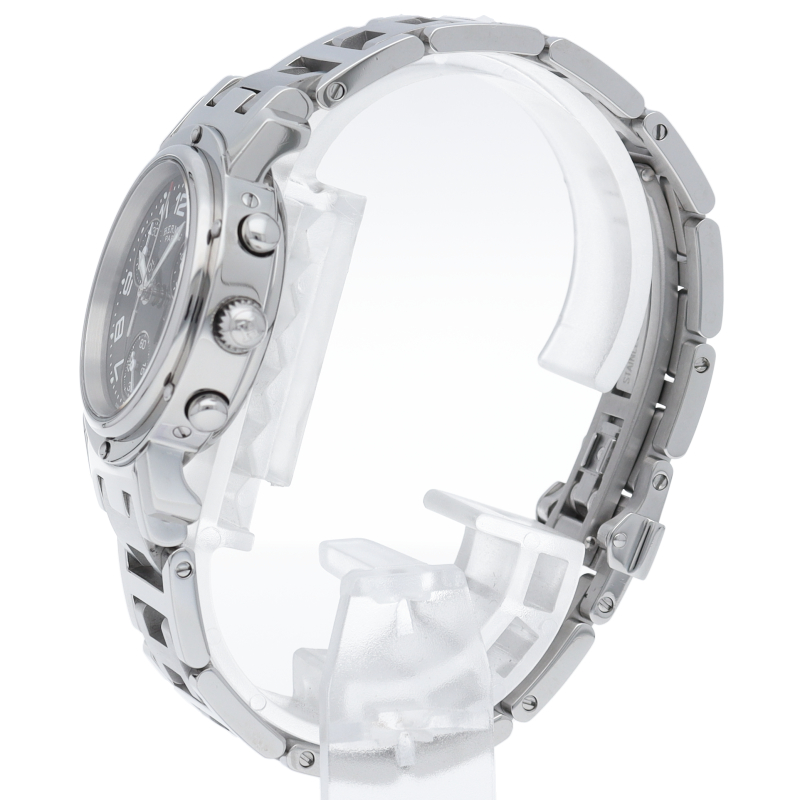 エルメスの時計シリーズの中でも非常にポピュラーな「クリッパー」。「H」ロゴを特徴としたブレスに上品で落ち着いたデザインが大人の雰囲気を演出します。クロノグラフ機能付。