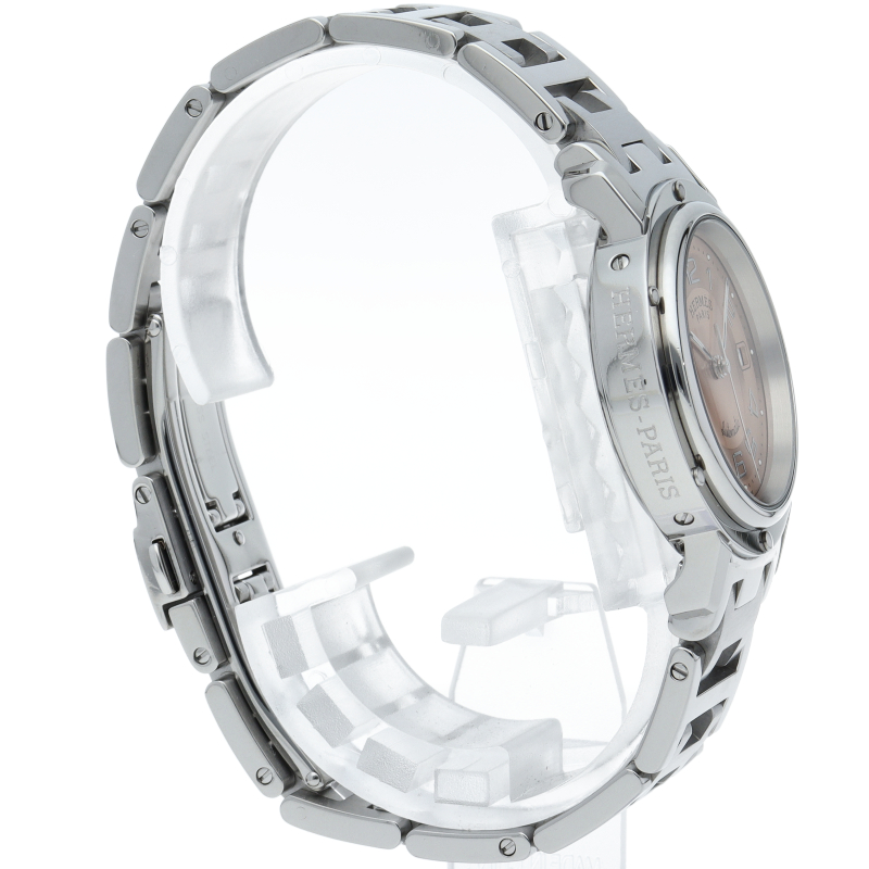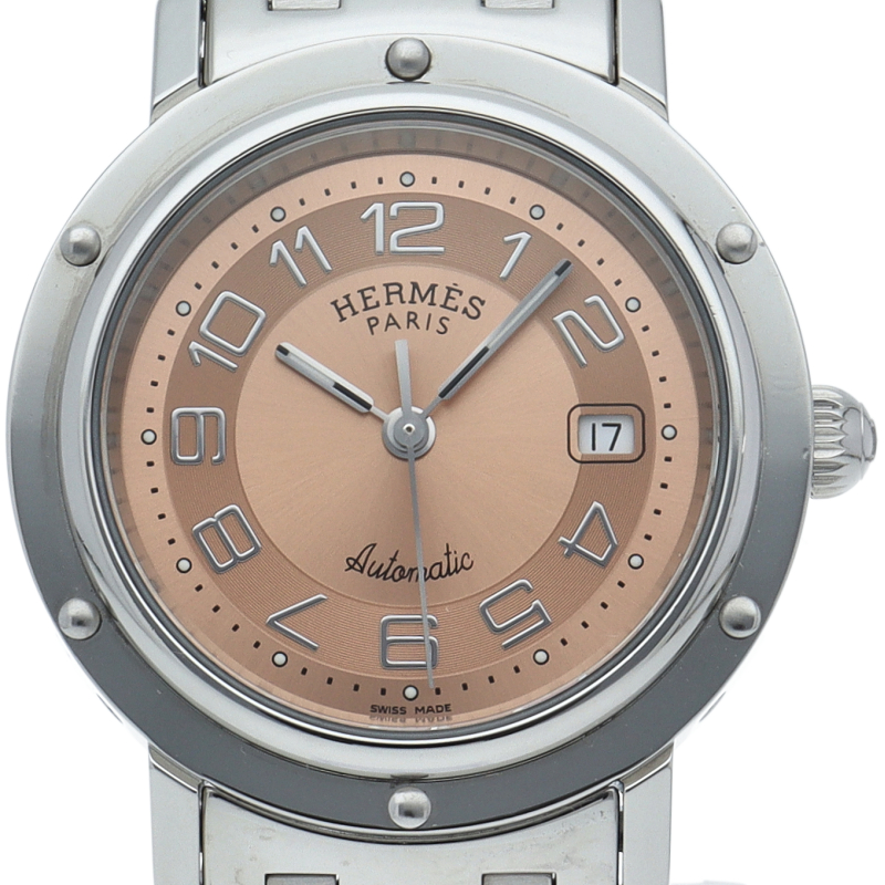 エルメスの時計シリーズの中でも非常にポピュラーな「クリッパー」。「H」ロゴを特徴としたブレスに上品で落ち着いたデザインが大人の雰囲気を演出します。