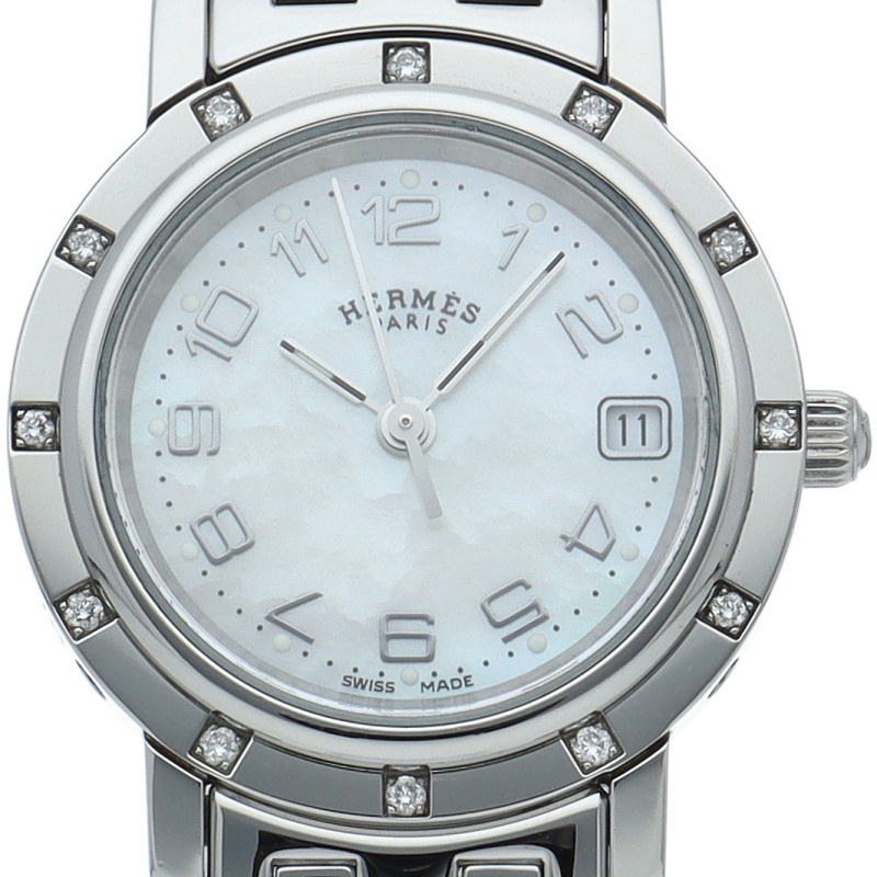 エルメスの時計シリーズの中でも非常にポピュラーな「クリッパー」。「H」ロゴを特徴としたブレスに上品で落ち着いたデザインが大人の雰囲気を演出します。