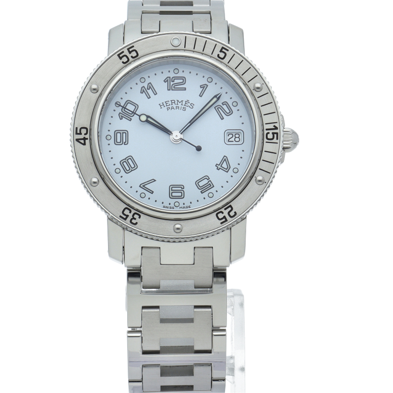 エルメスの時計シリーズの中でも非常にポピュラーな「クリッパー」。「H」ロゴを特徴としたブレスに上品で落ち着いたデザインが大人の雰囲気を演出します。