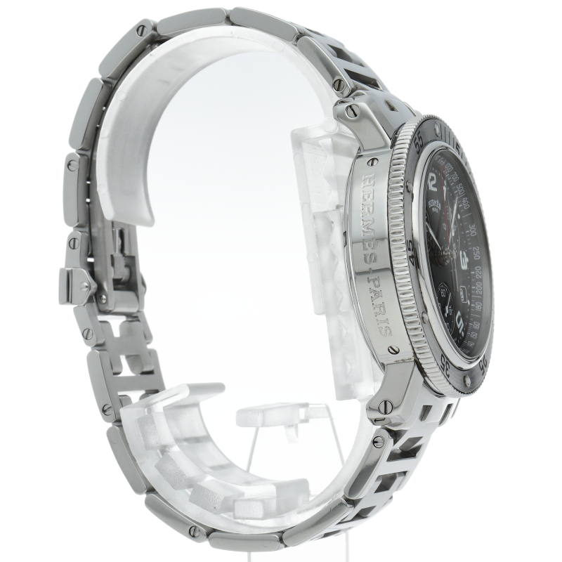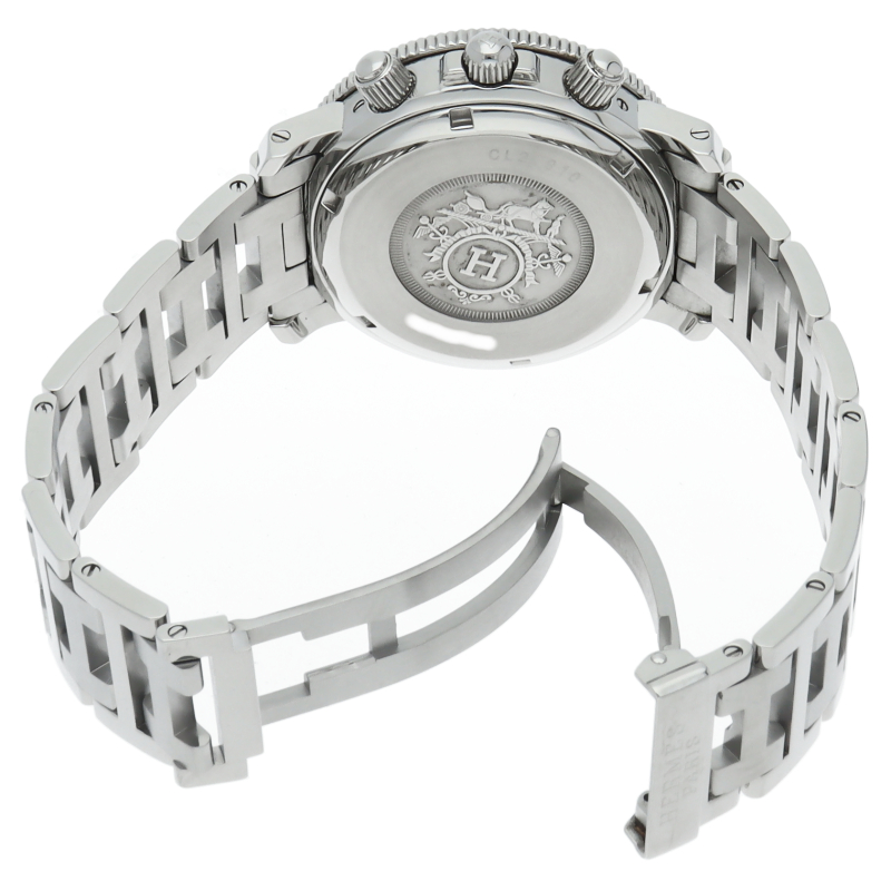 エルメスの時計シリーズの中でも非常にポピュラーな「クリッパー」。「H」ロゴを特徴としたブレスに上品で落ち着いたデザインが特徴です。クロノグラフ機能付。
